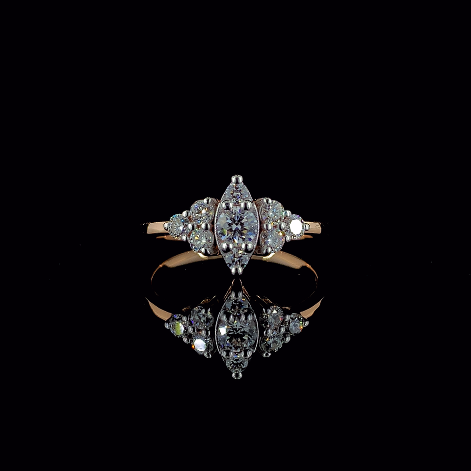 แหวนหมั้นเพชรเลี้ยงในห้องปฏิบัติการ 0.75 กะรัต รูปทรงมาร์ควิส ได้รับการรับรองจาก SGL ทองคำแท้ 14K