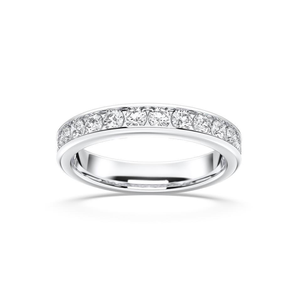 0.75กะรัต F-G /vs Lab สร้างเพชรทรงกลมแหวนครึ่งช่องใส่ได้ทั้งชายและหญิงผลิตใน950ทองคำขาว
