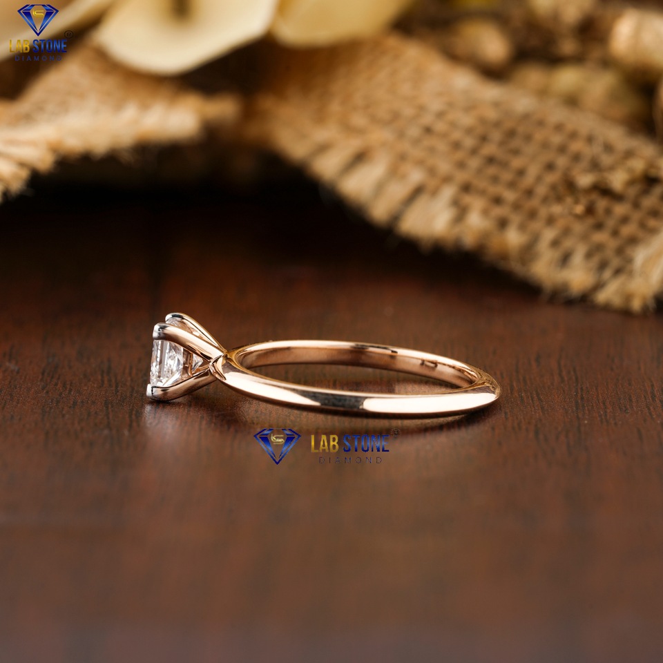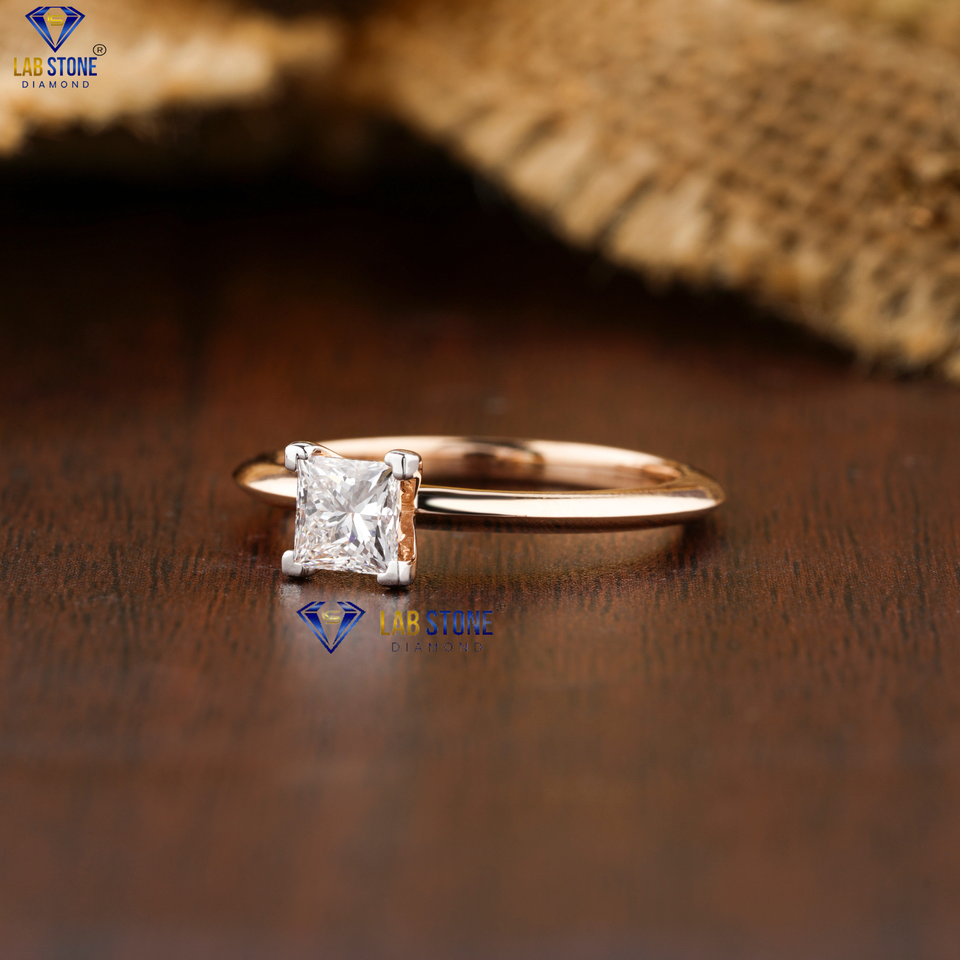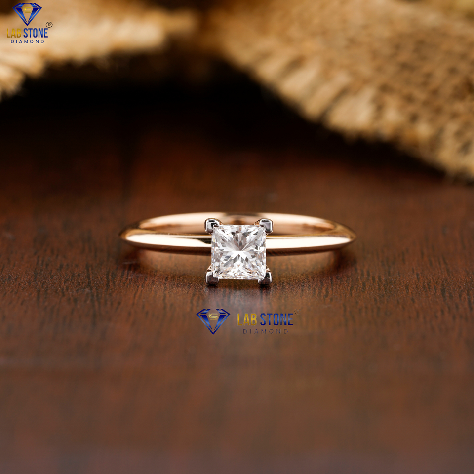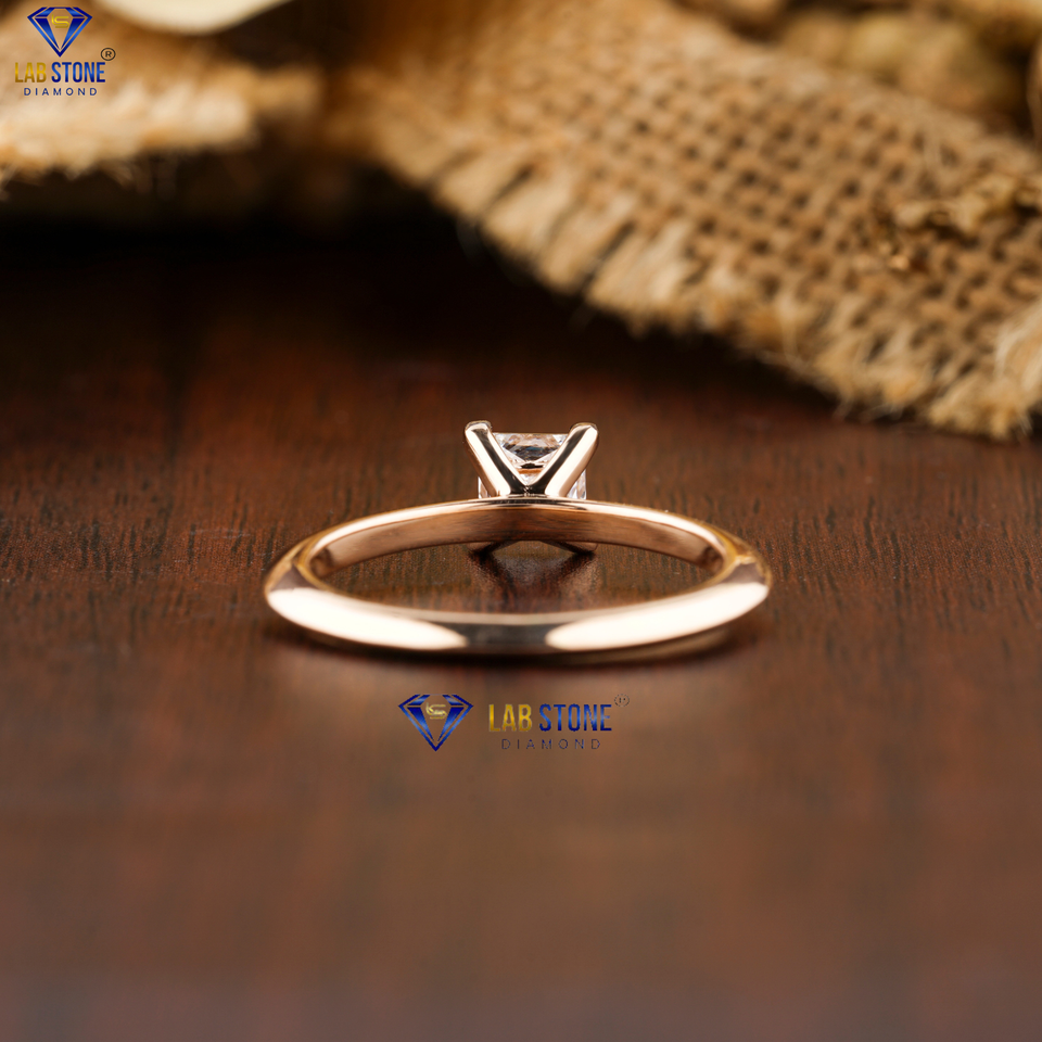แหวนเพชรแบบตัดแนวเจ้าหญิง Tdw แบบ0.75 18K สีโรสโกลด์ V การตั้งค่าขอบมีด cvd/hpht หินห้องแล็บเพชร