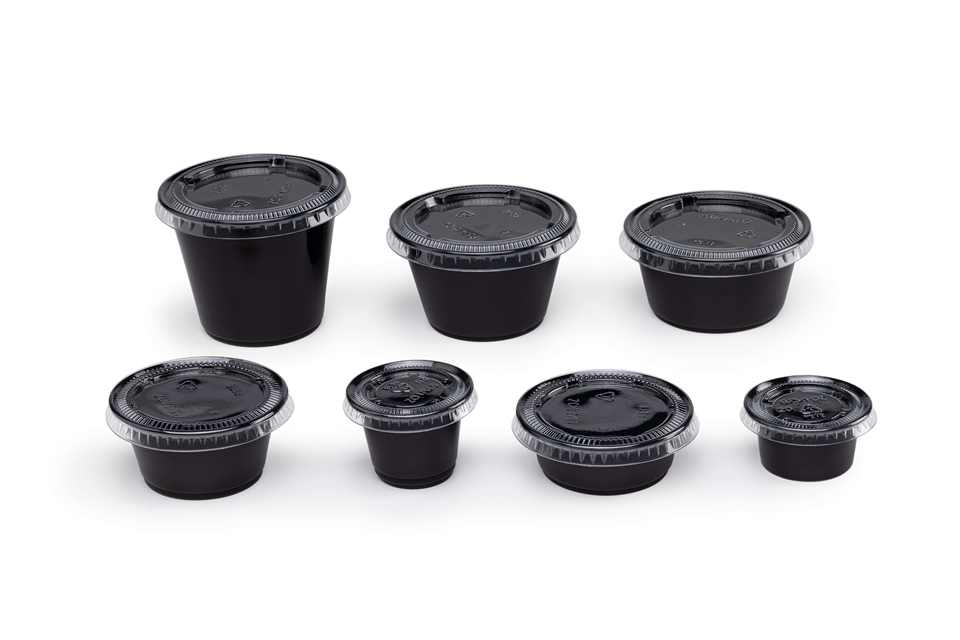ถ้วยซอสพลาสติกขนาดเล็กพร้อมฝาปิดขนาด0.75ออนซ์1ออนซ์2ออนซ์3.25ออนซ์4ออนซ์5.5ออนซ์แบบใช้แล้วทิ้ง