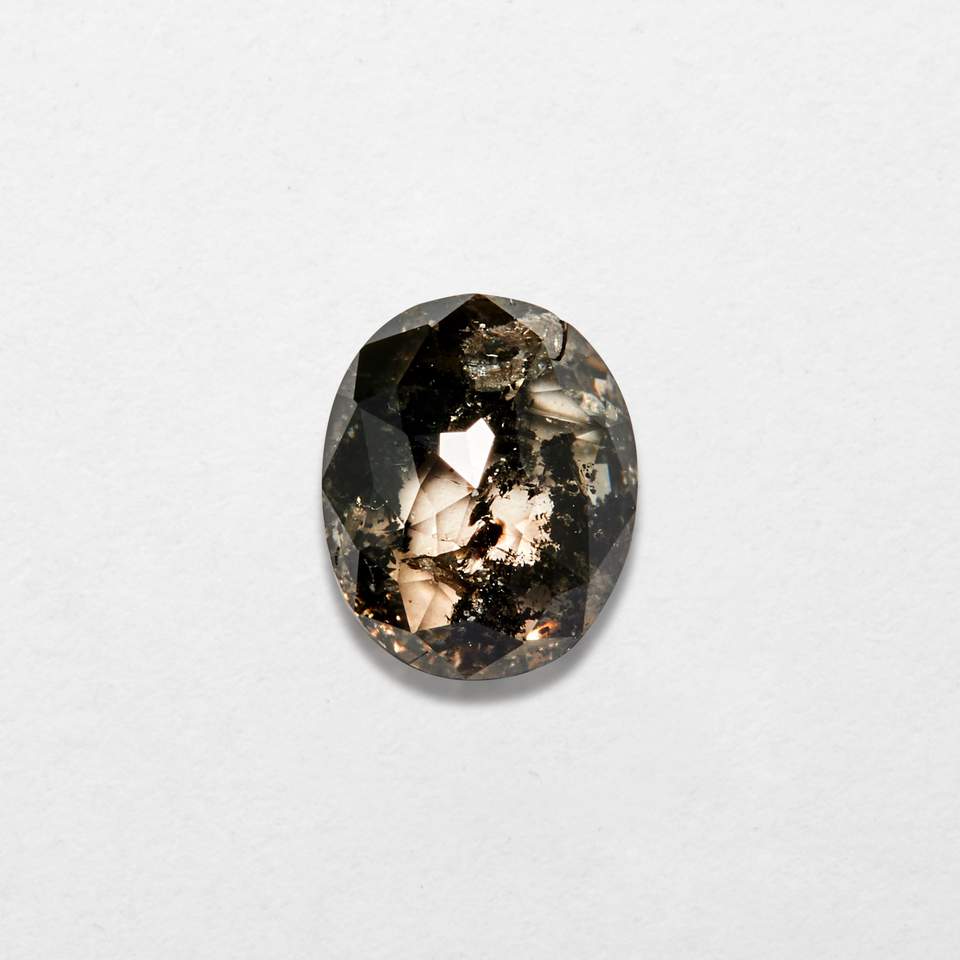 เพชรธรรมชาติทรงรี 0.76 กะรัต ขนาด 4.95x6.04x2.61 มม. แบบเกลือพริกไทย เพชรเม็ดเดี่ยวสำหรับทำเครื่องประดับ-คุณภาพเยี่ยมและเจียระไนอย่างดี