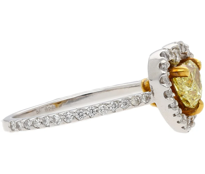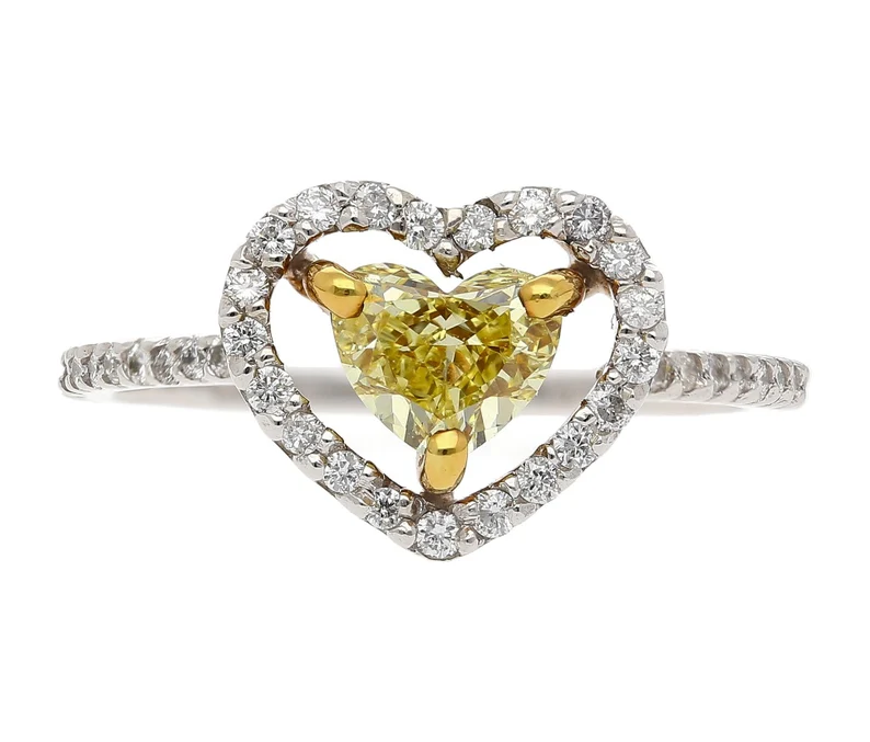 แหวนหมั้นเพชรรูปหัวใจสีเหลืองและเพชรรูปหัวใจ0.77กะรัตสำหรับผู้หญิงเครื่องประดับแฟชั่น