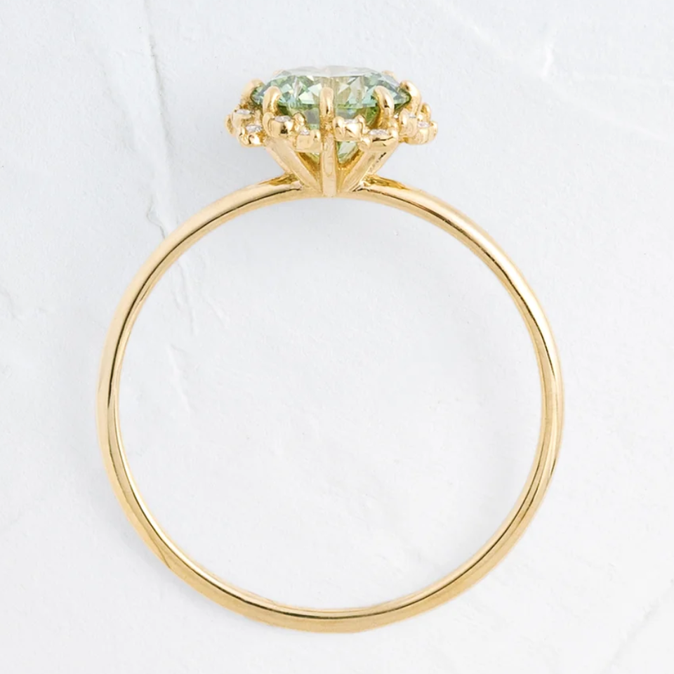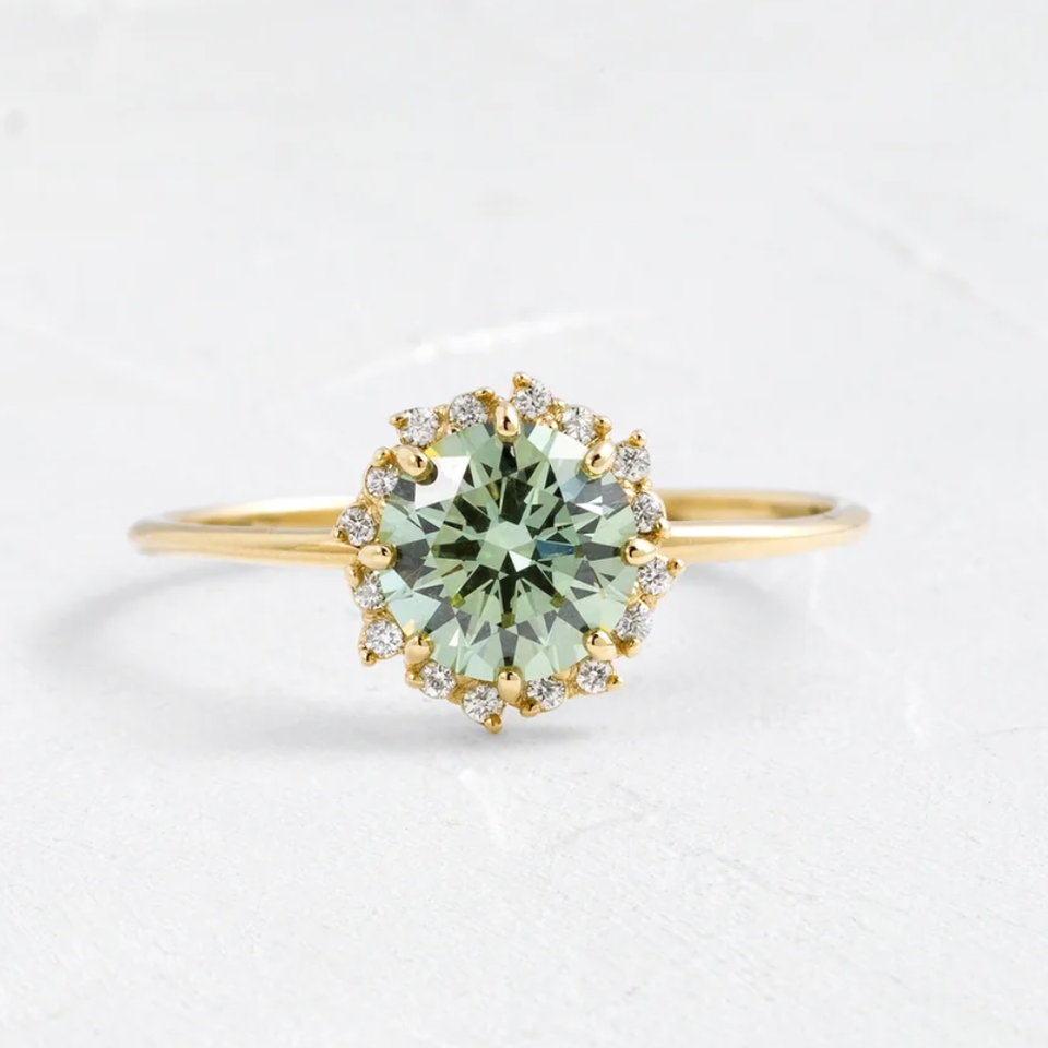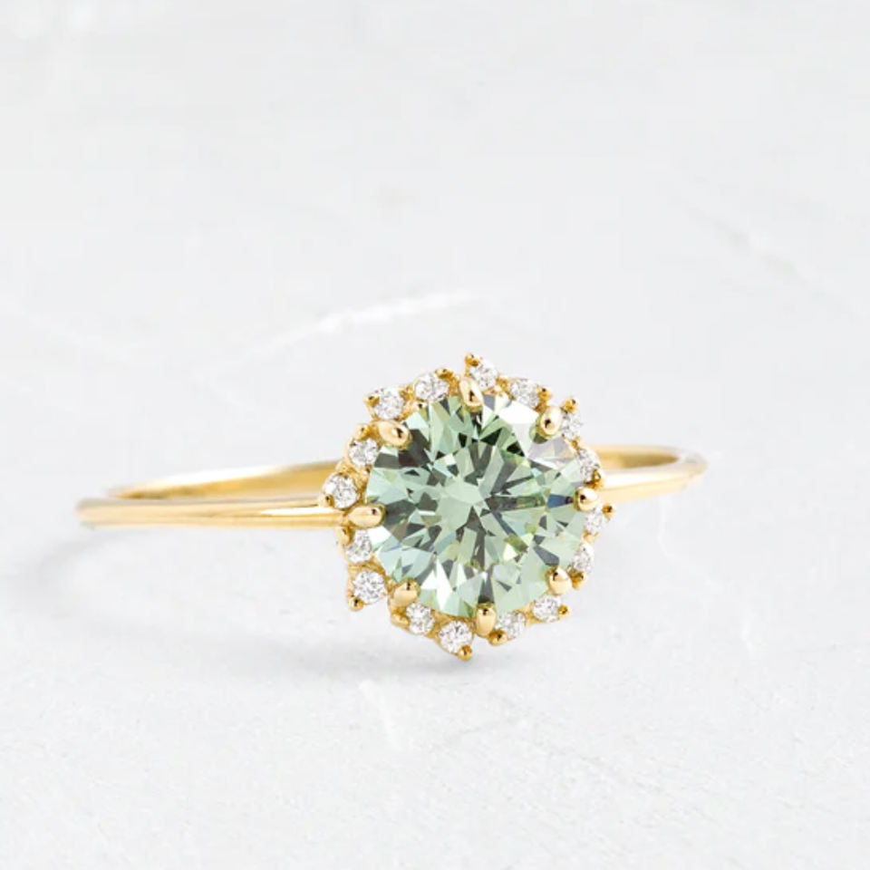 แหวนแต่งงานประดับเพชรเม็ดเดี่ยวสีเขียวสดใสแบบแฟนซีแหวนเพชร14K สีเหลืองทอง0.8กะรัต