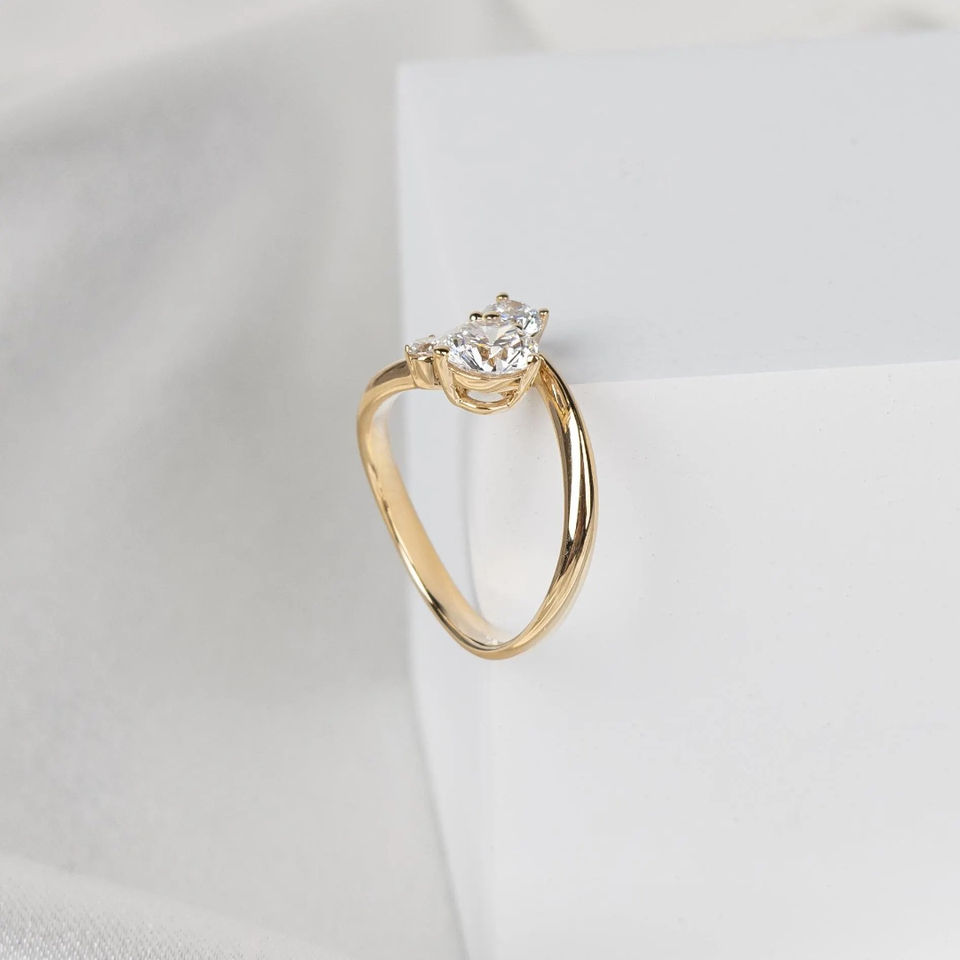 แหวนเพชรทรงกลม 0.80 กะรัต เพาะเลี้ยงในห้องปฏิบัติการ ทองคำ 14K สีเหลือง ดีไซน์โค้งแบบบายพาส แหวนแต่งงาน แหวนหมั้น ของขวัญเครื่องประดับสุดพิเศษ