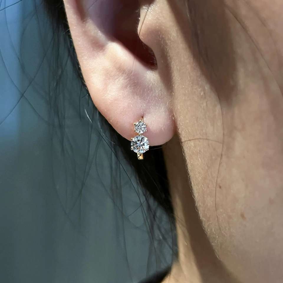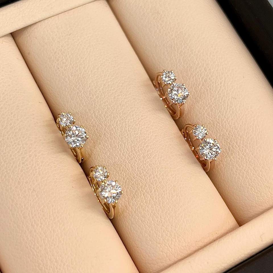ต่างหูแบบห่วงติดเพชรสำหรับผู้หญิง VS1 0.80CT ต่างหูทองล้วนยาว18K ประดับห้องแล็บ