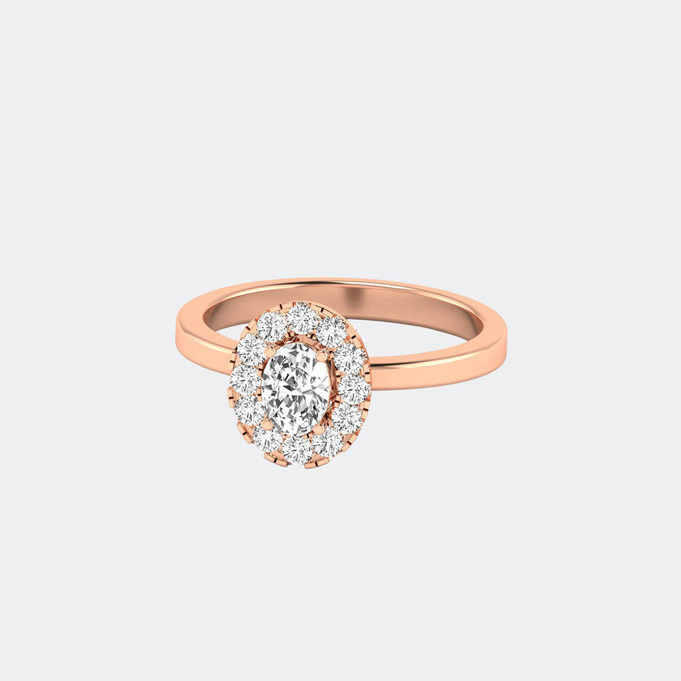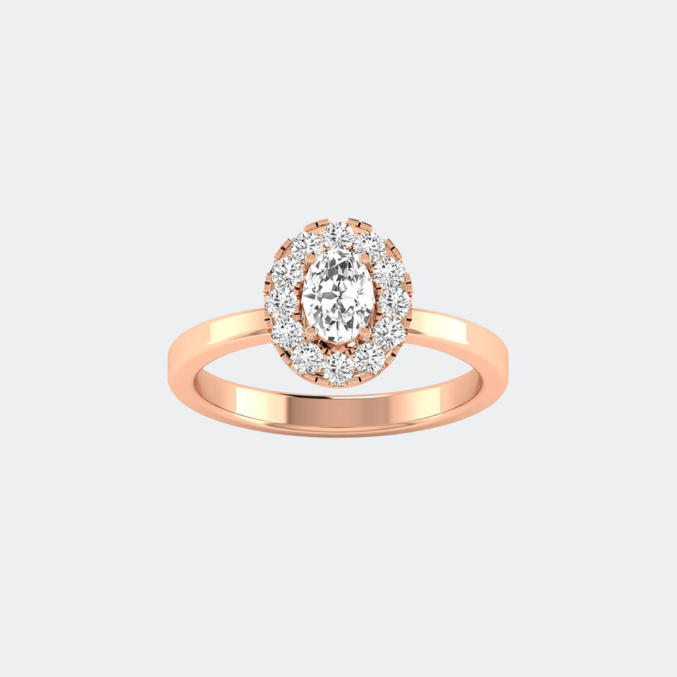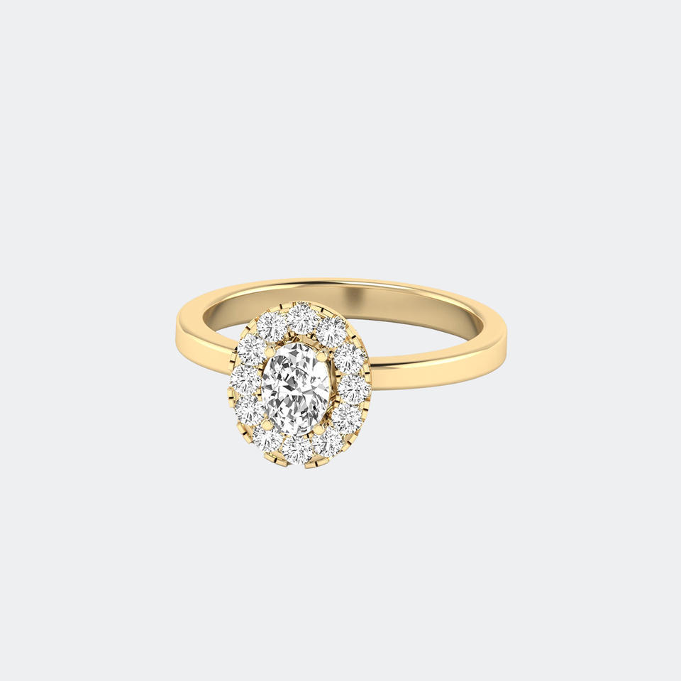 แหวนเพชรทรงรี 0.80 กะรัต ผลิตในห้องปฏิบัติการ สี DEF ความสะอาด VVS VS ตัวเรือนทอง ดีไซน์เรียบหรู เหมาะสำหรับเป็นแหวนหมั้น