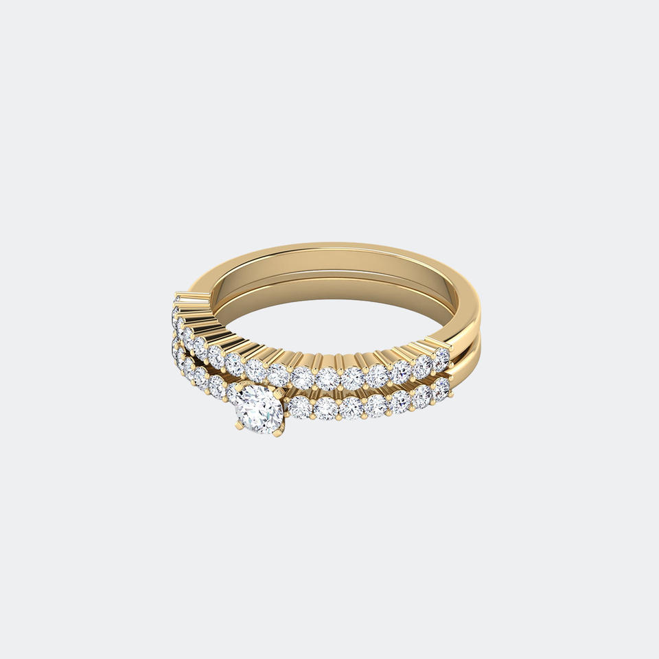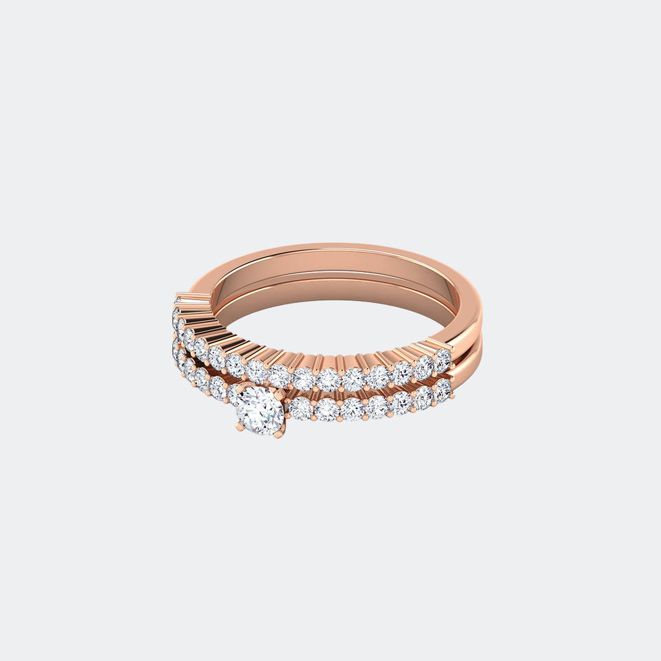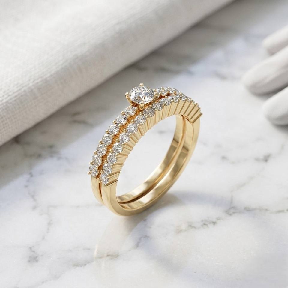 แหวนเพชรเม็ดเดี่ยวทรงกลม 0.80 กะรัต พร้อมเพชรเลี้ยงในห้องปฏิบัติการ ชุบทอง 9K สี E หรูหรา ประดับเพชรสองแถว