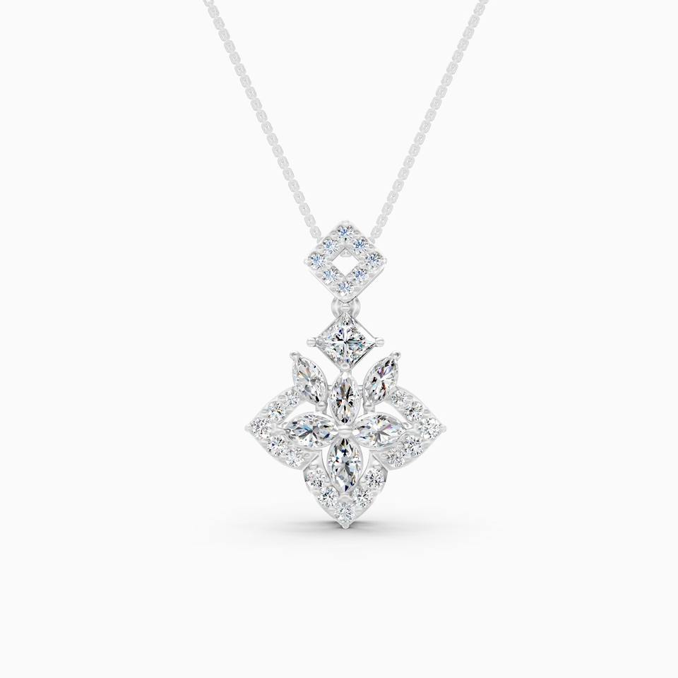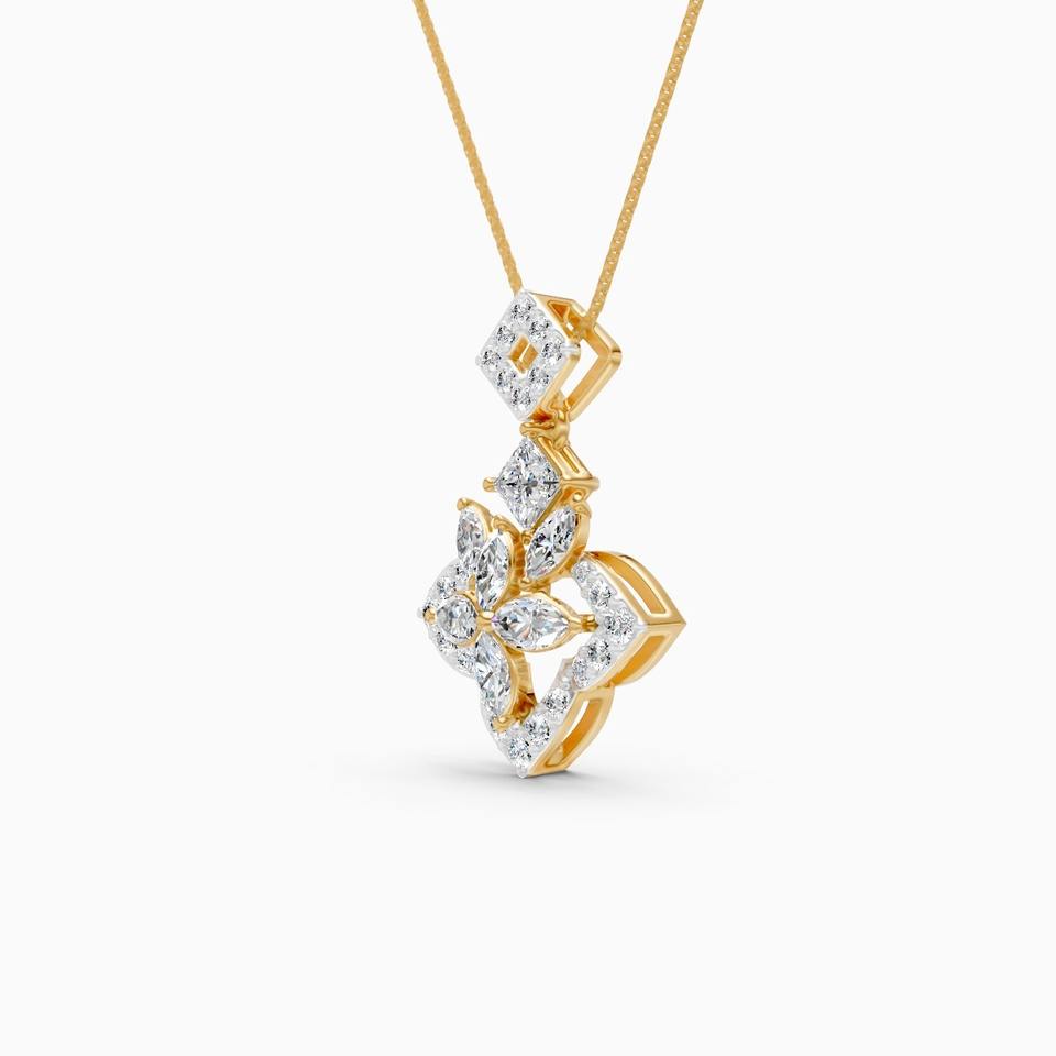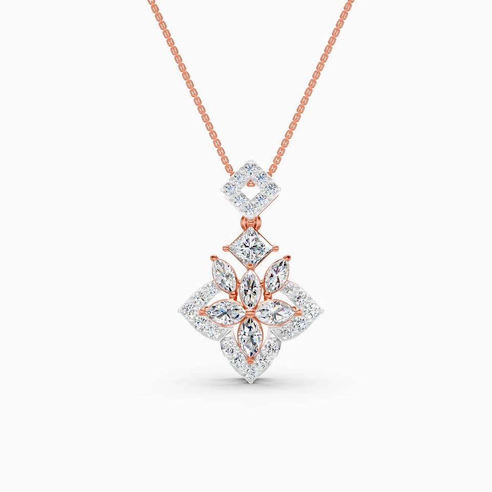 0.86 Ct Lab Grown Diamond Trendy Marquise Petal And Rounded Bloom Pendant In 9K Yellow White And Rose Gold