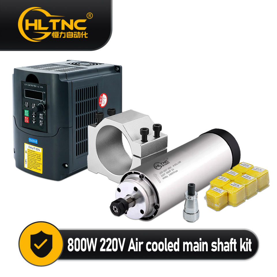 ชุดแกนหมุน ER11 800W 65mm 400Hz 24000RPM 110/220V ชุดมอเตอร์เครื่องยนต์ระบายความร้อนด้วยอากาศพร้อมแบริ่ง4ตัวสำหรับอลูมิเนียมงานไม้ CNC