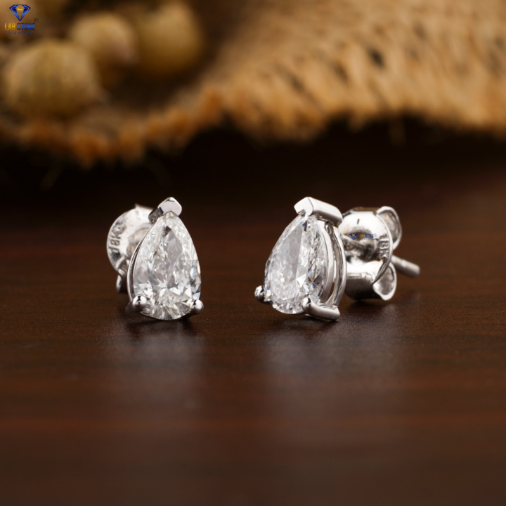 ต่างหูรูปดาวระเบิดลูกแพร์0.90 18K ทองคำขาวประดับเพชร HPHT/CVD