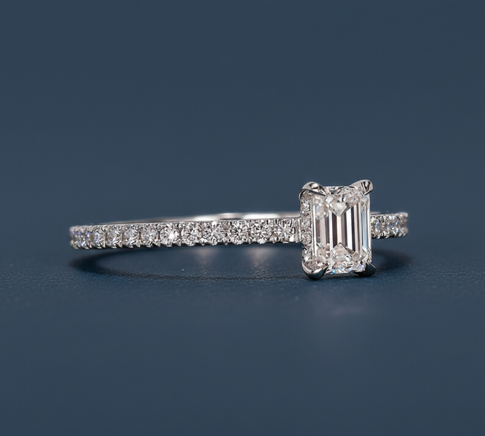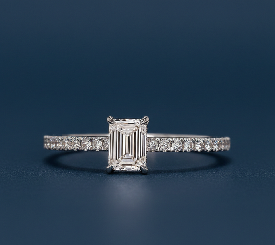 0.90CT Emerald Cut Lab Grown Diamond Engagement Bridal Ring VVS2 F IGI Certified 14KT Rhodium Plated White Gold Wholesale Custom
