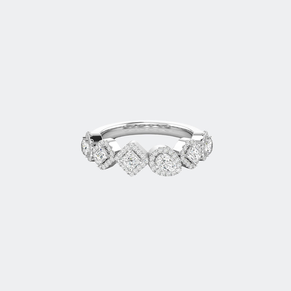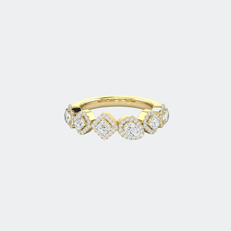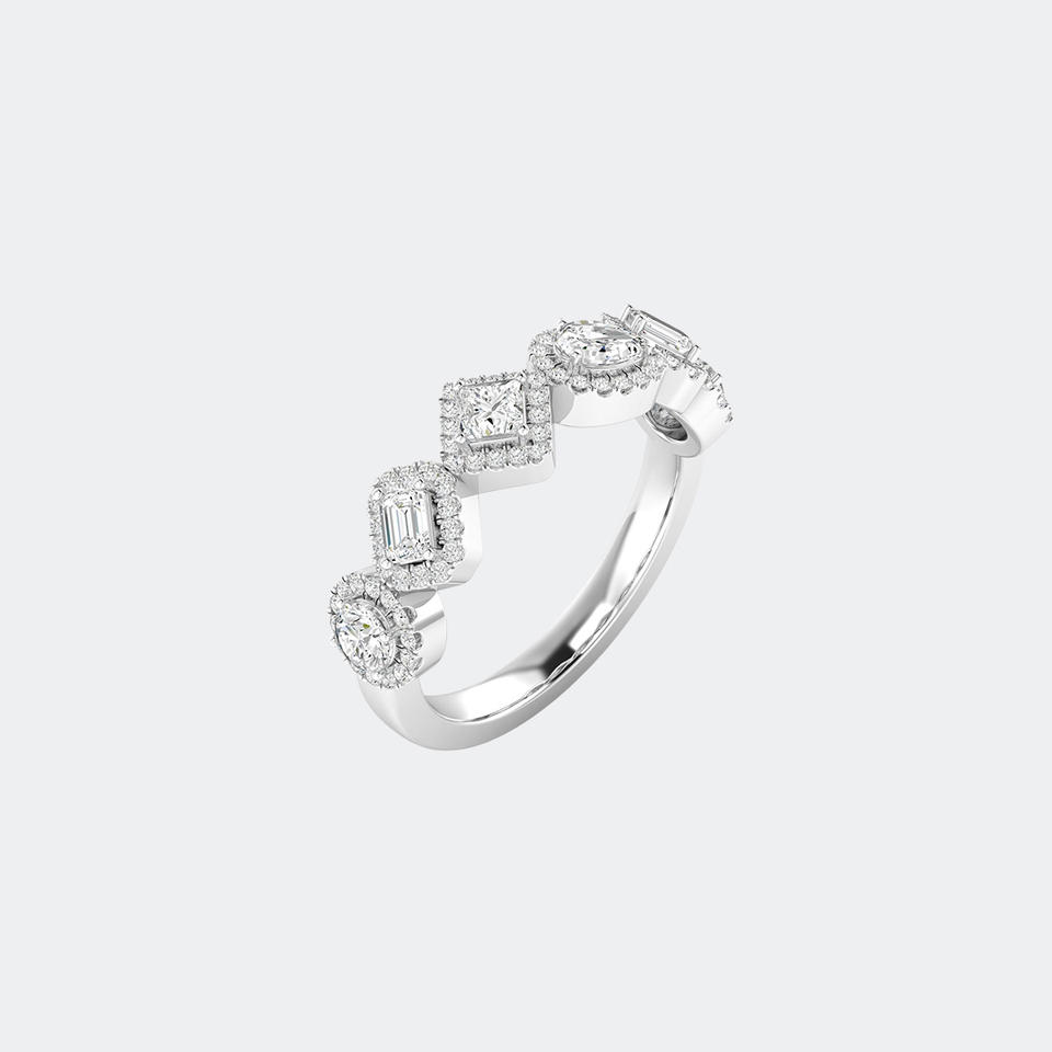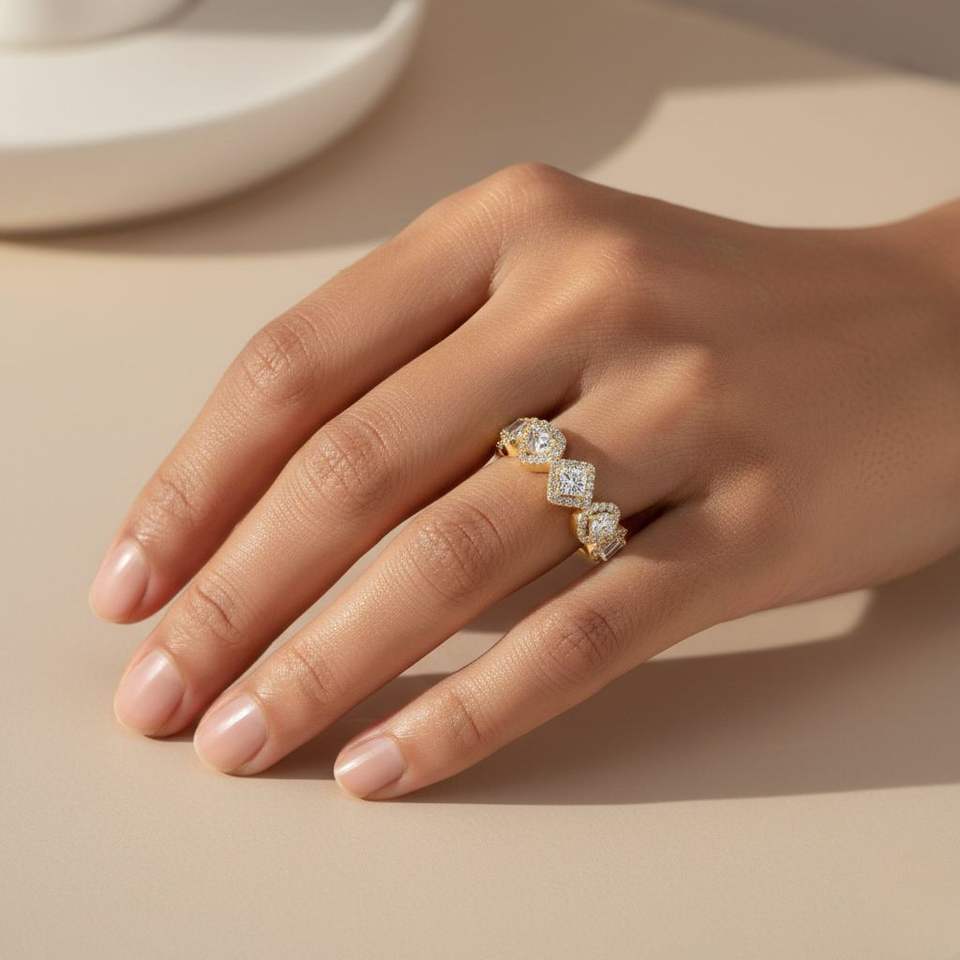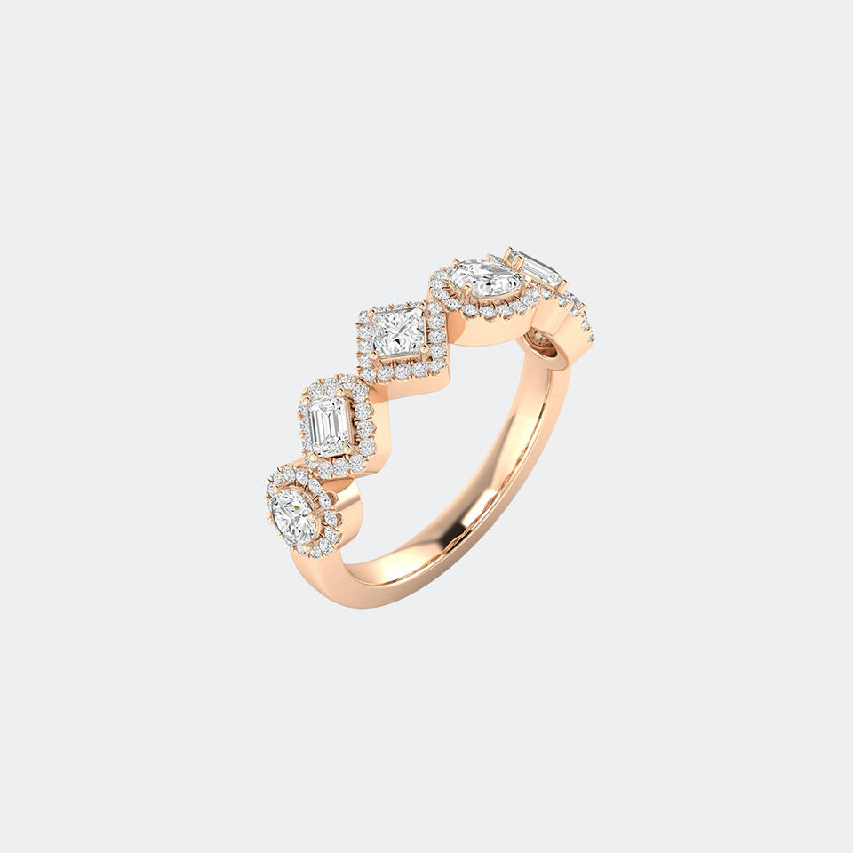 แหวนทรงเรขาคณิตสำหรับผู้หญิง ทอง 9k ประดับเพชรทรงกลมเจียระไนแบบบริลเลียนท์ น้ำหนัก 0.90 กะรัต สี E เพชรเพาะเลี้ยงในห้องปฏิบัติการ ดีไซน์หรูหรา