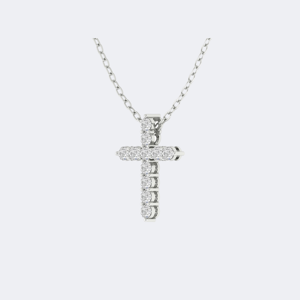 จี้เพชรทรงกลมเจียระไนแบบบริลเลียนท์ น้ำหนักรวม 0.90 กะรัต สร้อยคอทอง 14K ระดับความสะอาด VVS2 สี EF ฝังแบบหนามเตย ดีไซน์คลาสสิก เหมาะเป็นของขวัญเครื่องประดับทางศาสนา