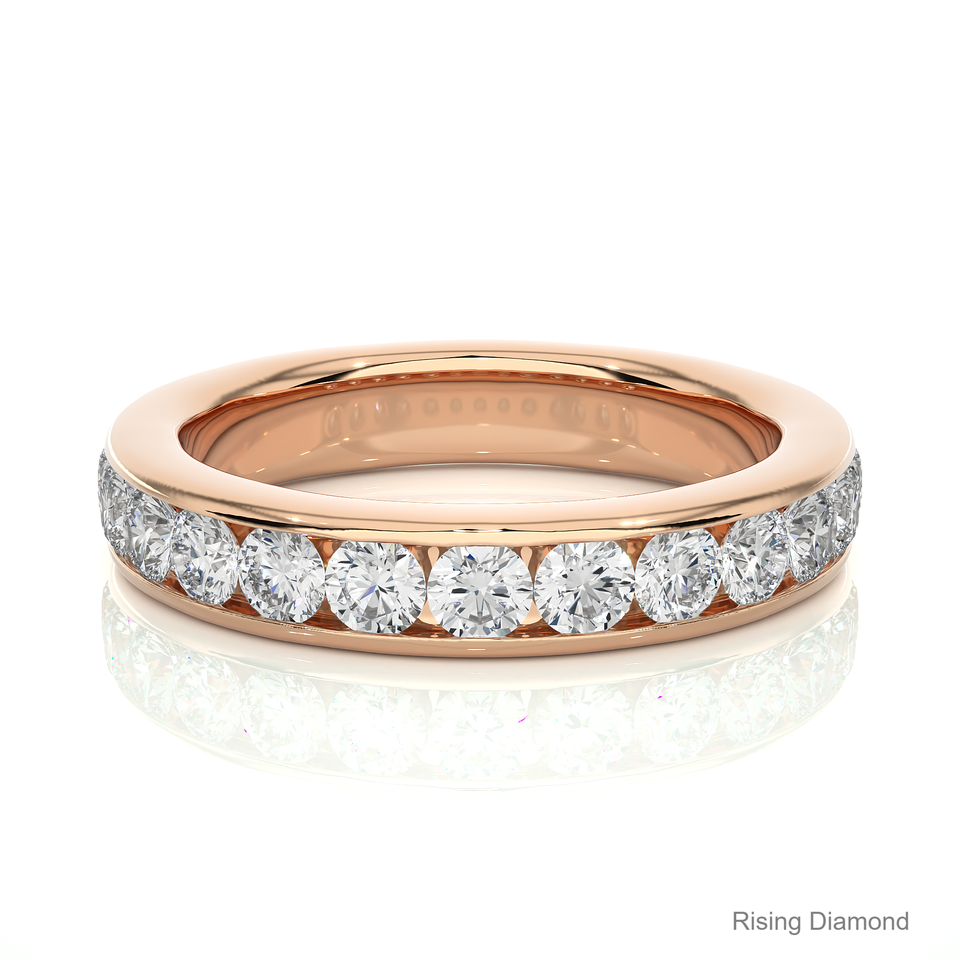 0.96 CTW round Lab ชุดเพชรที่โตขึ้นครึ่งนิรันดร์วงแหวนแต่งงาน CVD และแหวนครบรอบโรสโกลด์ของขวัญวันครบรอบปีที่สมบูรณ์แบบ