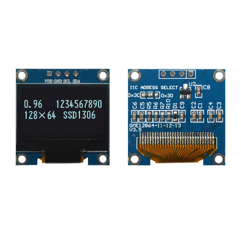 0.96 นิ้ว 128x64 OLED SSD1306 COG IIC โมดูลจอแสดงผล (สีขาว/สีฟ้า/สองสี -20~70 อุณหภูมิในการทำงาน ไม่ต้องเชื่อม)