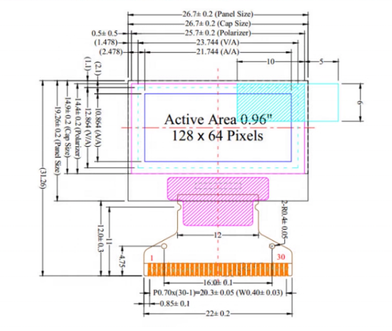 ลักษณะ:จอแสดงผล OLED ขนาด0.96"