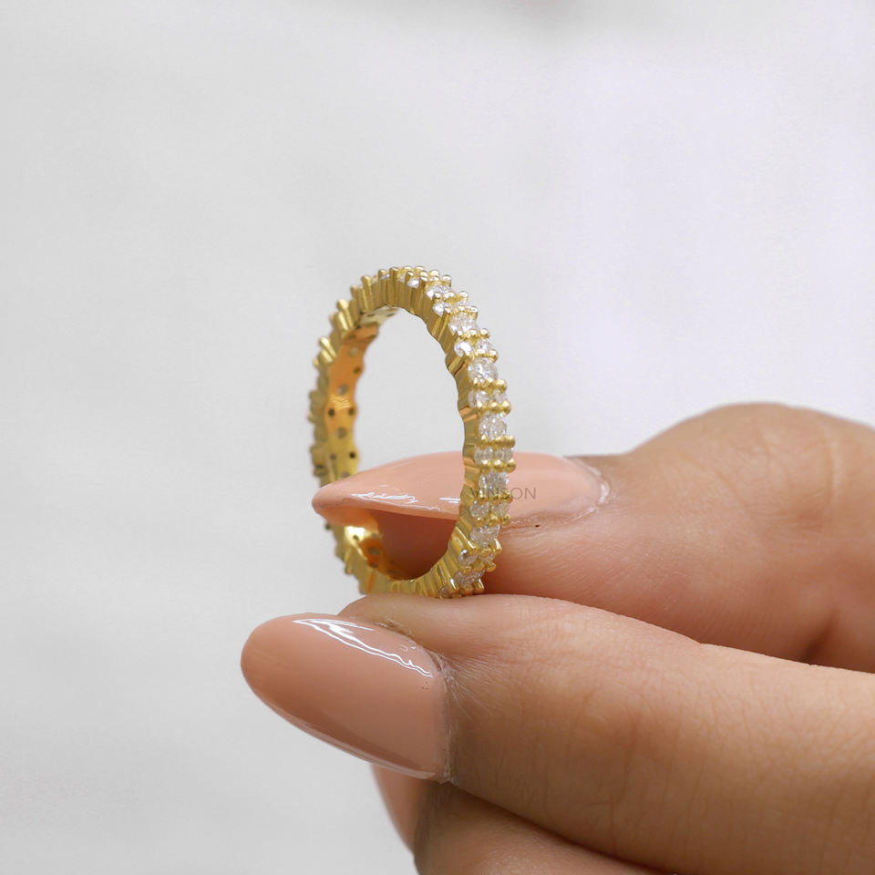 แหวนเพชรโมอีสทรงกลมพลอยเทียมเพชร18K สำหรับผู้หญิง0.98 cttw สำหรับงานแต่งงาน