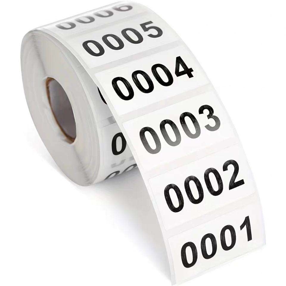 สติกเกอร์กระดาษแบบม้วน ตัดไดคัท หมายเลขลำดับ 0001-1000 แบบมีกาวในตัว สี CMYK ขนาดตามสั่ง สำหรับงานคราฟต์