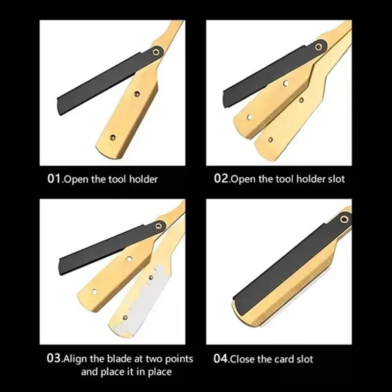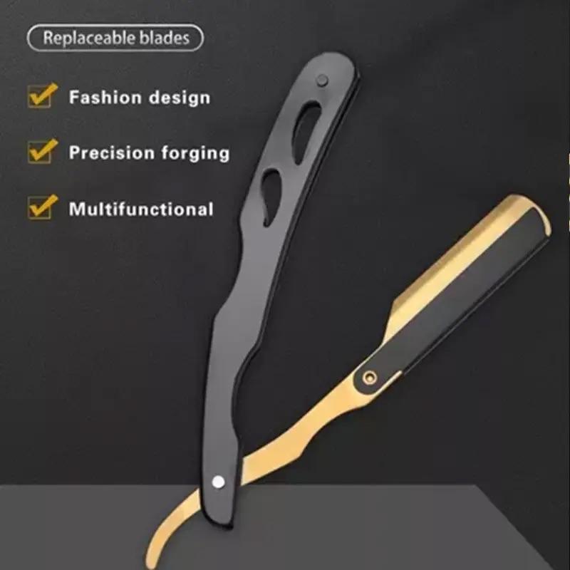 0001B for Gillette Straight Razor for Barber Shop Navajin K068 Black Gold Single Replaceable Blade Plastic Handle for Body Face