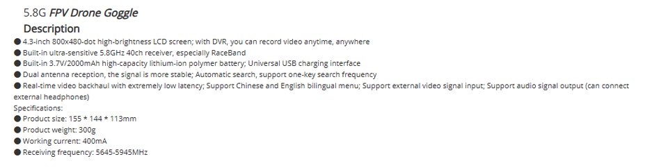แว่นตา FPV รุ่น 008D Pro- 5.8G ขนาด 4.3 นิ้ว เสาอากาศคู่ สำหรับการแข่งโดรนระดับมืออาชีพและการถ่ายภาพทางอากาศ ให้ประสบการณ์สมจริง DMKR