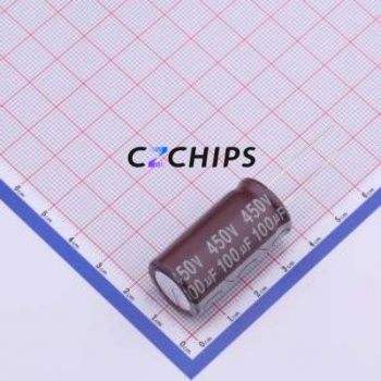 ตัวเก็บประจุอิเล็กโทรไลต์อะลูมิเนียมแบบ Through-Hole รุ่น 01EC1555 ชิ้นส่วนแบบ Through-Hole (THT) ขนาด D18xL32 มม. 100uF 20% 450V 1.98A-100kHz