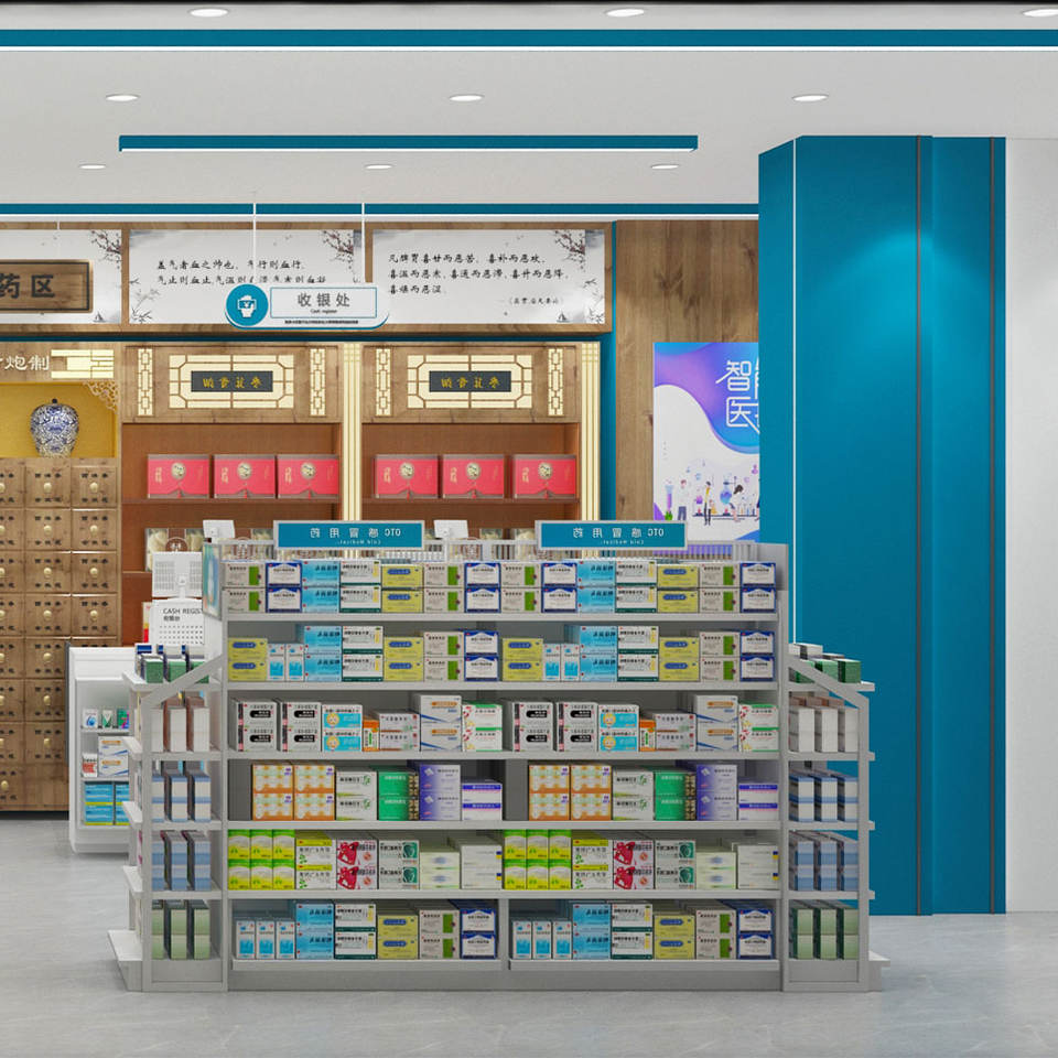 ชั้นวางอุปกรณ์ตกแต่งร้านขายยาประหยัดพื้นที่ชั้นวางอุปกรณ์ตกแต่งร้านขายยา02-DYJYS002สำหรับร้านขายยาดีไซน์ภายใน