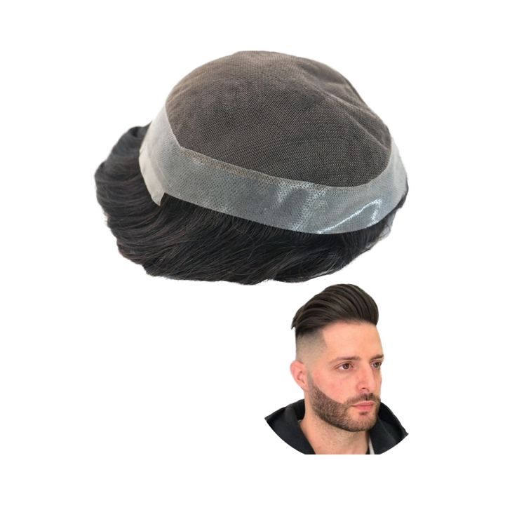 วิกผมผู้ชาย 026 Golden LFTP แบบติดลูกไม้สไตล์ออสเตรเลีย ผมแท้จากอินเดีย แบบลอนน้ำตรง 130% 38 มม. 50 กรัม