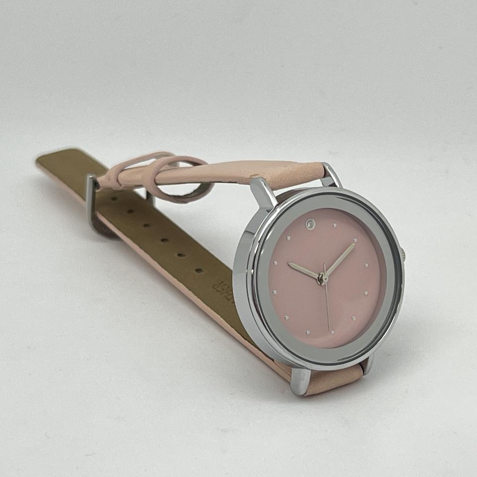 0865-B แฟชั่นเรียบง่ายสไตล์เกาหลีตัวเรือนโลหะผสม 32 มม.สาย PU สีชมพูหน้าปัดสีชมพูตัวชี้ควอตซ์นาฬิกาผู้หญิงพร้อมกลไกแบบญี่ปุ่น