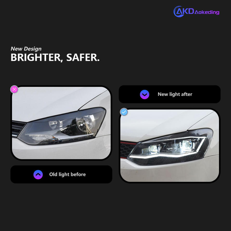 09-18 Volkswagen POLO Golf GTI ไฟหน้าประกอบกับเลนส์ LED ดัดแปลงไฟเปลี่ยนสัญญาณน้ำในเวลากลางวัน