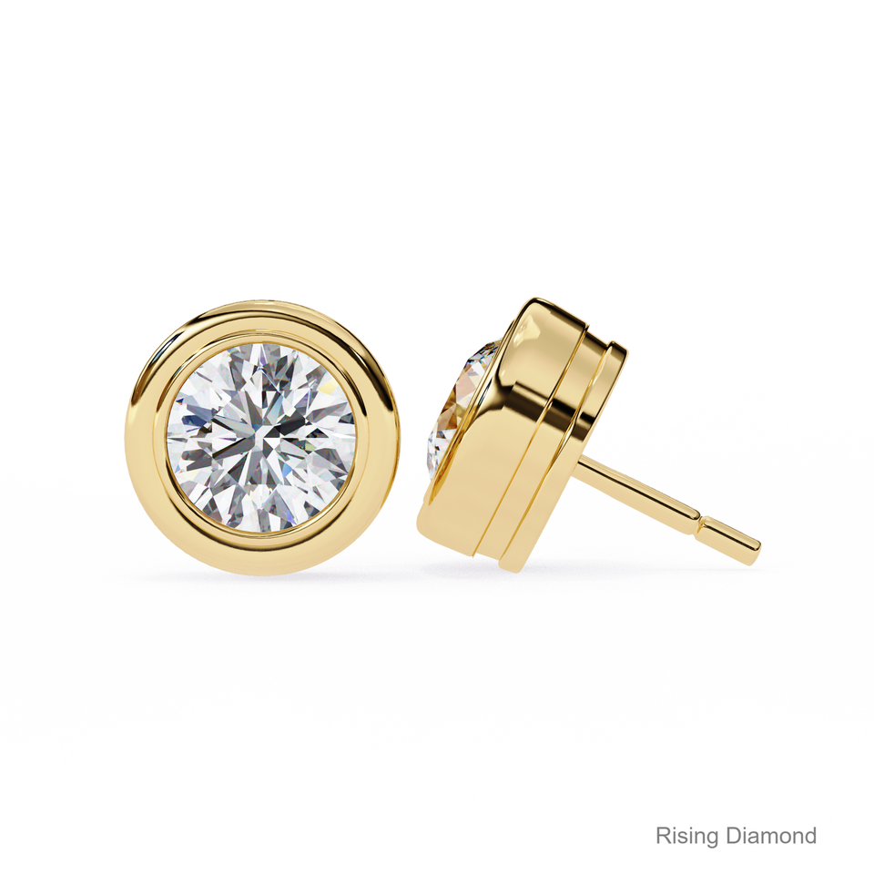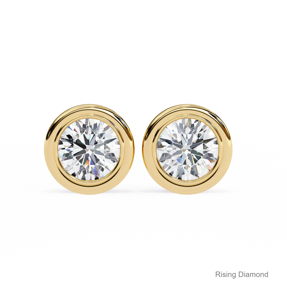 ต่างหูเพชรเม็ดกลมเล็ก1.0กะรัตสีเหลืองทองของขวัญครบรอบปีของผู้หญิง