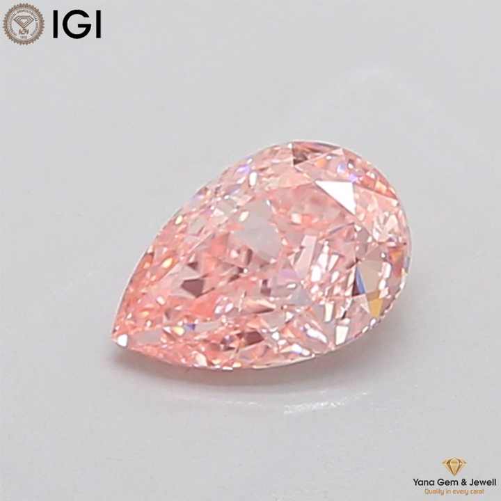 เพชรทรงลูกแพร์ 1.00 กะรัต พร้อมใบรับรอง IGI สีชมพูสดใส ระดับความสะอาด VVS2 เพชร CVD ที่เพาะเลี้ยงในห้องปฏิบัติการ สำหรับการออกแบบแหวนหรู