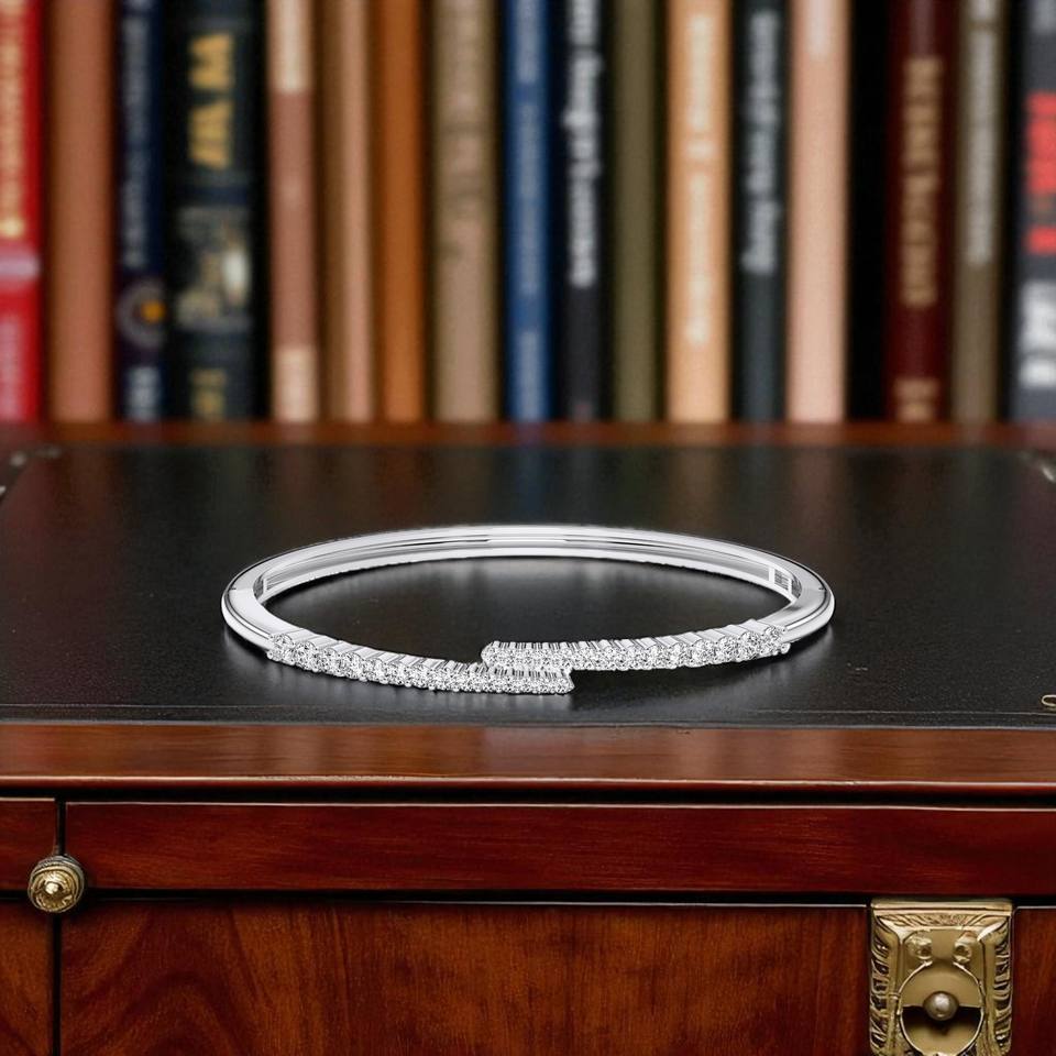 1.00 CT F-G/VS Round Cut Lab Grown Diamond Prong Set Open Bangle Made in Silver 925 For Unisex