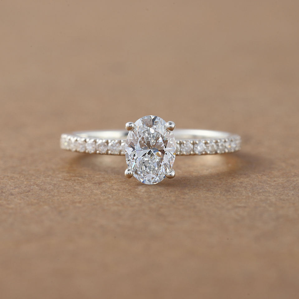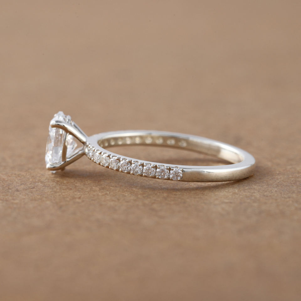 แหวนหมั้นเพชรสำหรับผู้หญิงขนาด18K ทรงวงรีสุดหรูสำหรับผู้หญิง1.00กะรัตเจียระไนในห้องปฏิบัติการ