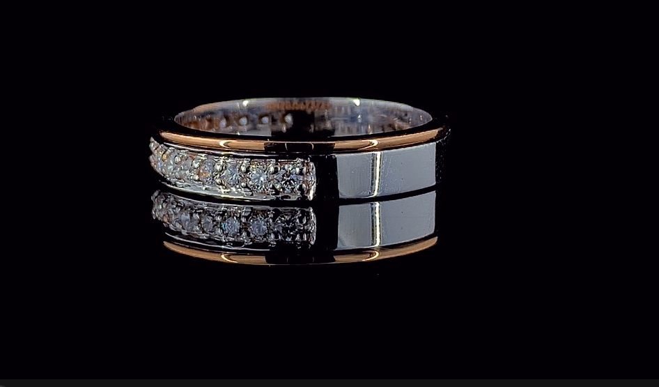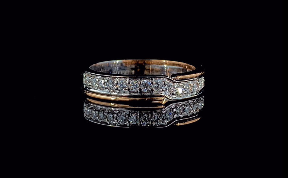 แหวนเพชรเลี้ยงในห้องปฏิบัติการ 1.00 กะรัต แบบครึ่งวง 3 มม. สองสี ได้รับการรับรองจาก SGL ทองคำแท้ 14K
