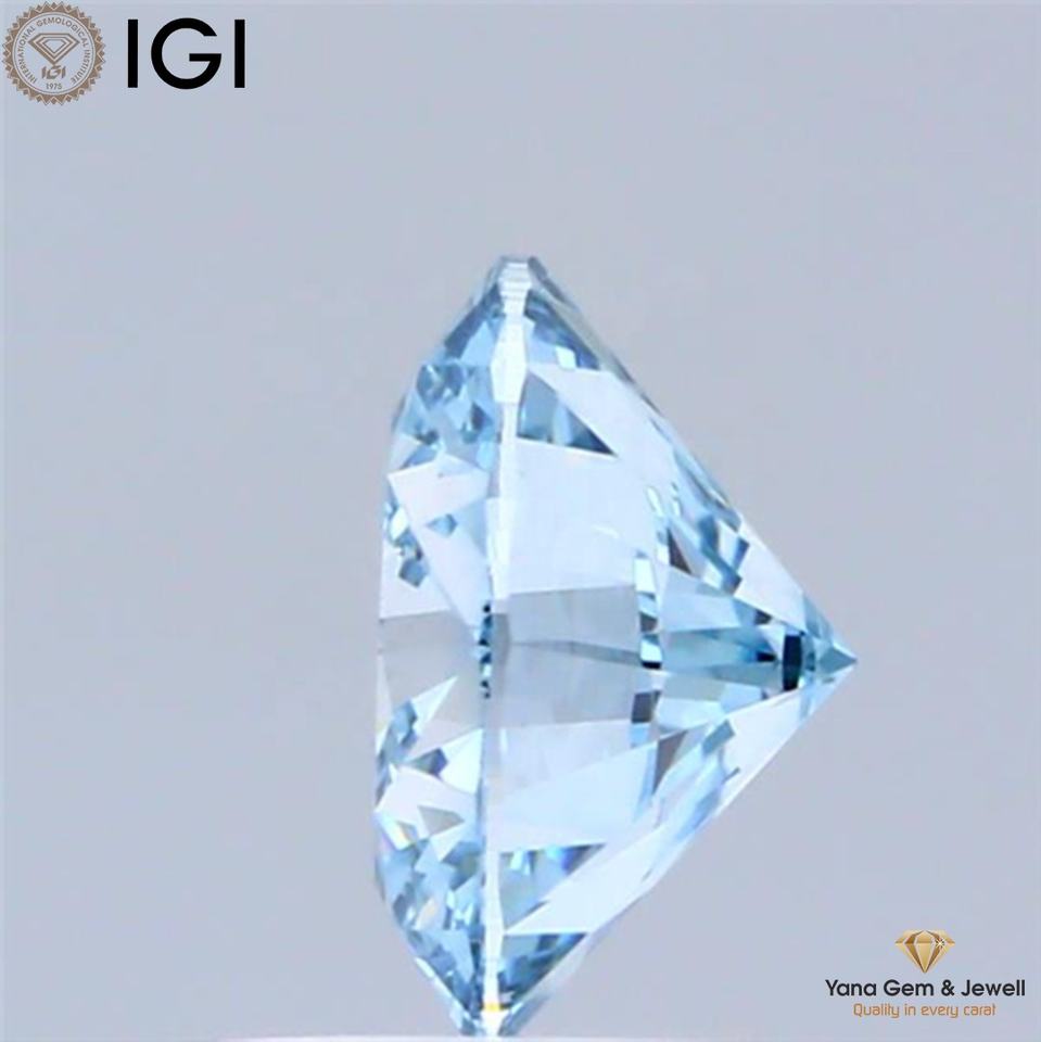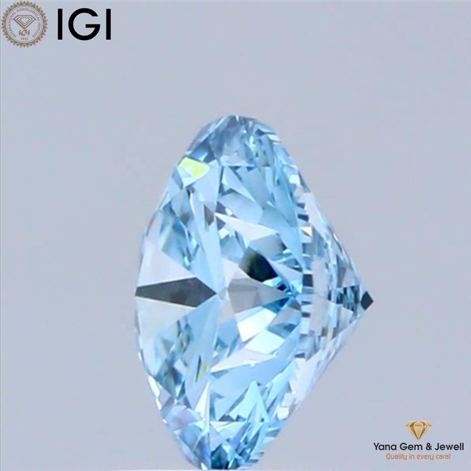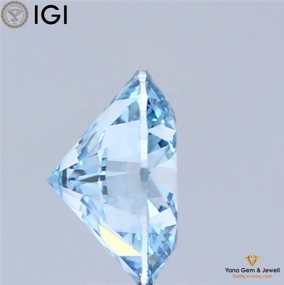 เพชร CVD ที่เพาะเลี้ยงในห้องปฏิบัติการ ขนาด 1.00 กะรัต รูปทรงกลม ขนาด 6.56 มม. สีฟ้าสดใสแฟนซี พร้อมใบรับรอง IGI ความสะอาดระดับ VS1 สำหรับทำเครื่องประดับตามสั่ง