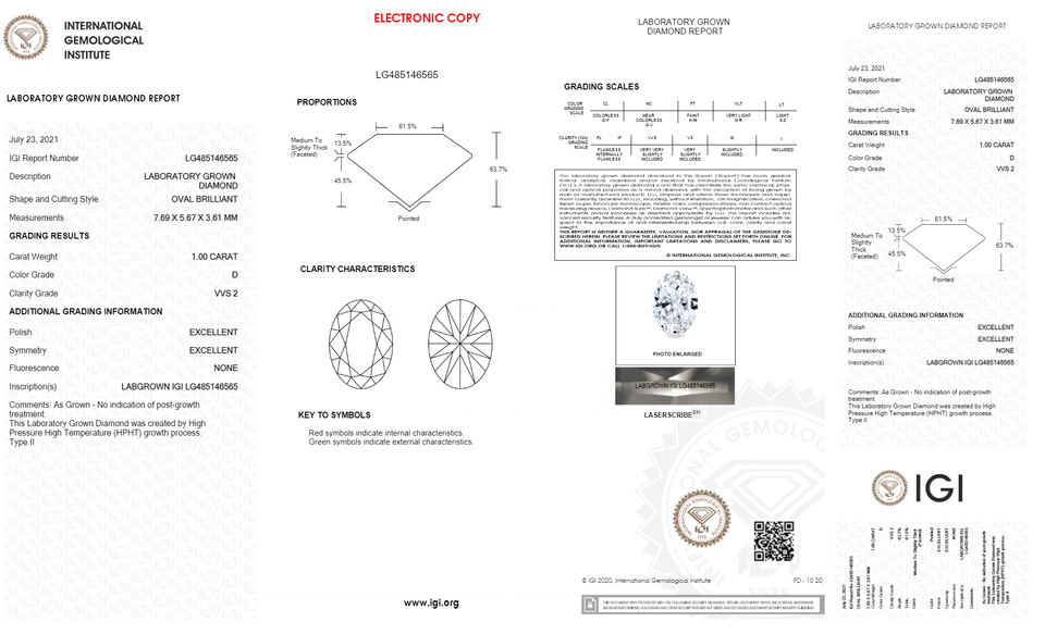 เพชรทรงรี1.00กะรัต VVS2รูปวงรีสำหรับปลูกได้รับการรับรองว่า IGI แบบหลวมสุกใสจากอินเดีย