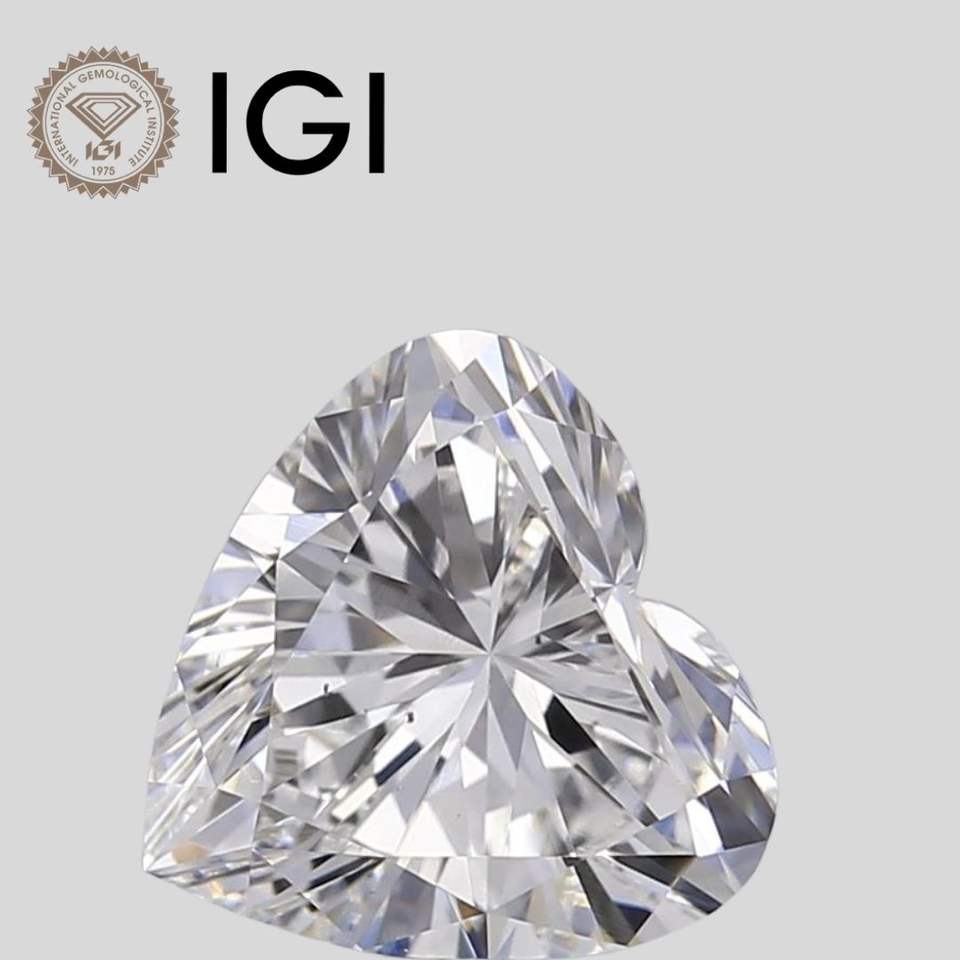 เพชรรูปหัวใจ 1.00 กะรัต เพาะเลี้ยงในห้องปฏิบัติการ สี E ความสะอาดระดับ VS2 ได้รับการรับรองจาก IGI