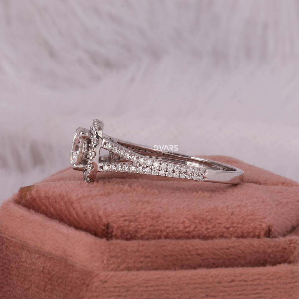 1.00 Carat VVS Clarity Lab Grown Brilliant Cut Diamond Engagement Ring Halo Split Shank 14k White Gold Plated Solid 18k Gold IGI