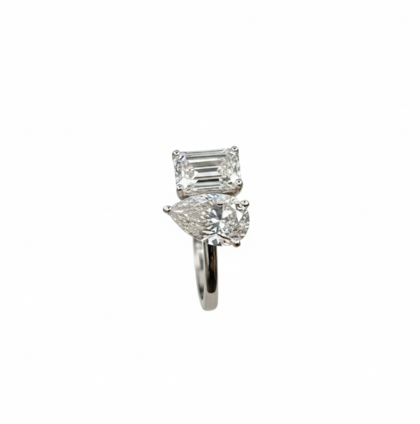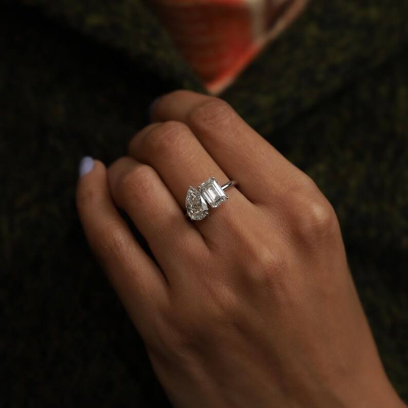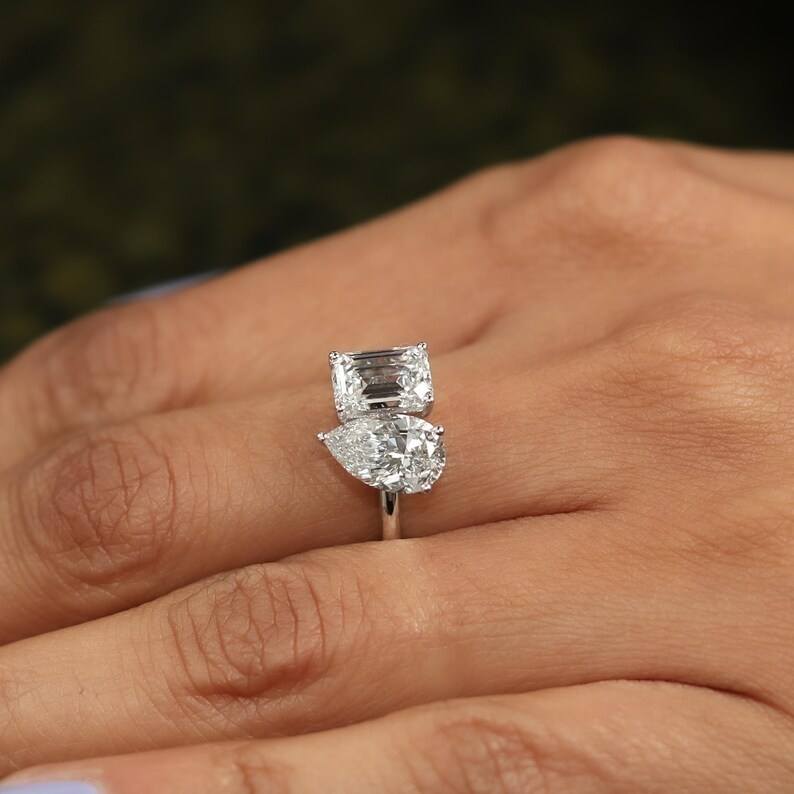 แหวนเพชรทรงหยดน้ำมรกต 1.00 กะรัต เงินแท้ 925 ทองคำขาว 14K 18K แหวนเพชร Toi Et Moi แบบสองเม็ด ดีไซน์ทันสมัยสำหรับหมั้น