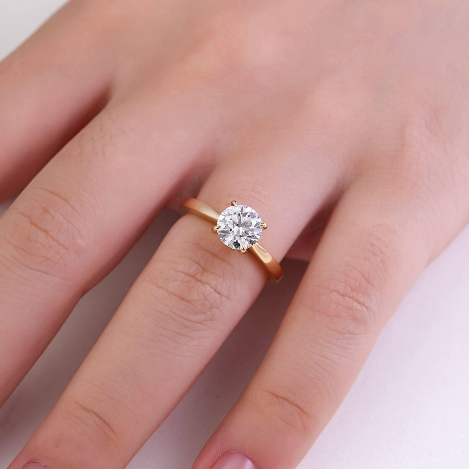 แหวนหมั้นเพชรทรงกลม 1.00 กะรัต ผลิตในห้องปฏิบัติการ | ทองคำแท้ 14K แบบคลาสสิกทรงโซลิแทร์ | เพชรที่ได้รับการรับรองจาก IGI ของขวัญสำหรับเธอ