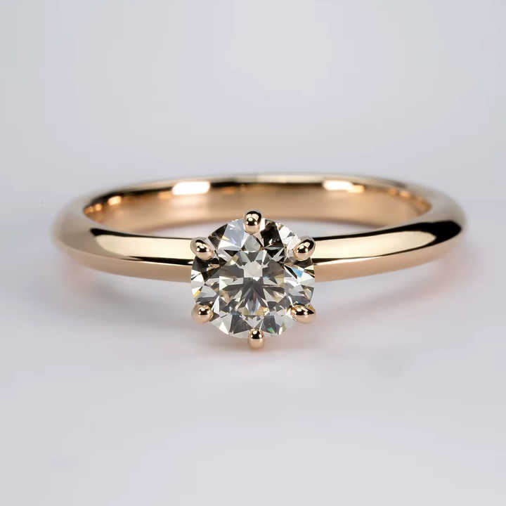 แหวนเพชรทรงกลม 1.00 กะรัต เพชรเลี้ยงในห้องปฏิบัติการ ทองคำ 18K/14K/10K สีเหลือง ดีไซน์เรียบหรู สำหรับงานหมั้นและงานแต่งงาน เครื่องประดับคุณภาพสูง ขายส่ง