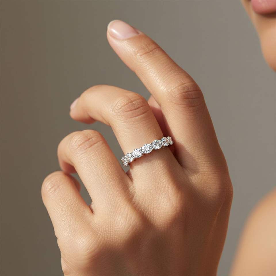 แหวนครึ่งวงกลมทรงรี 1.00CTW ประดับเพชรแบบ Prong Set