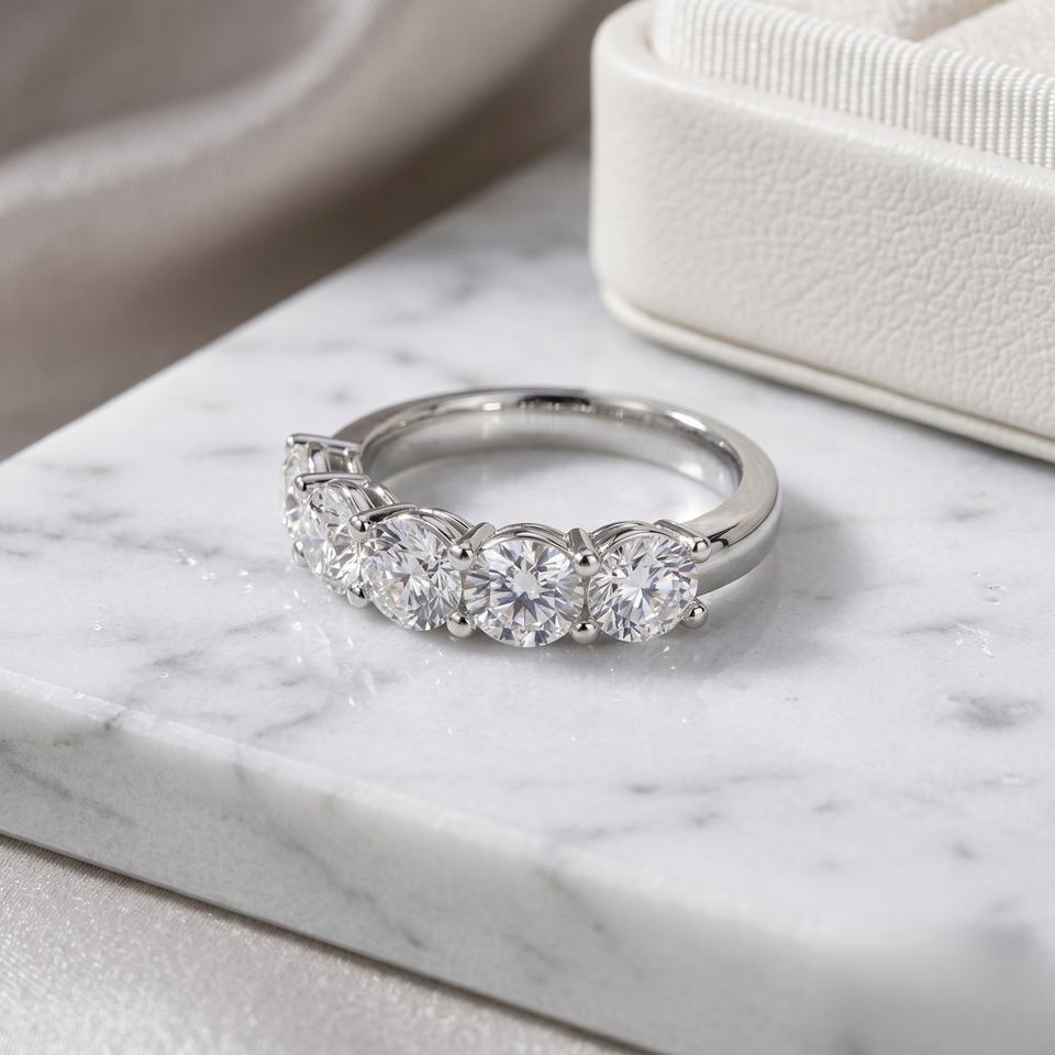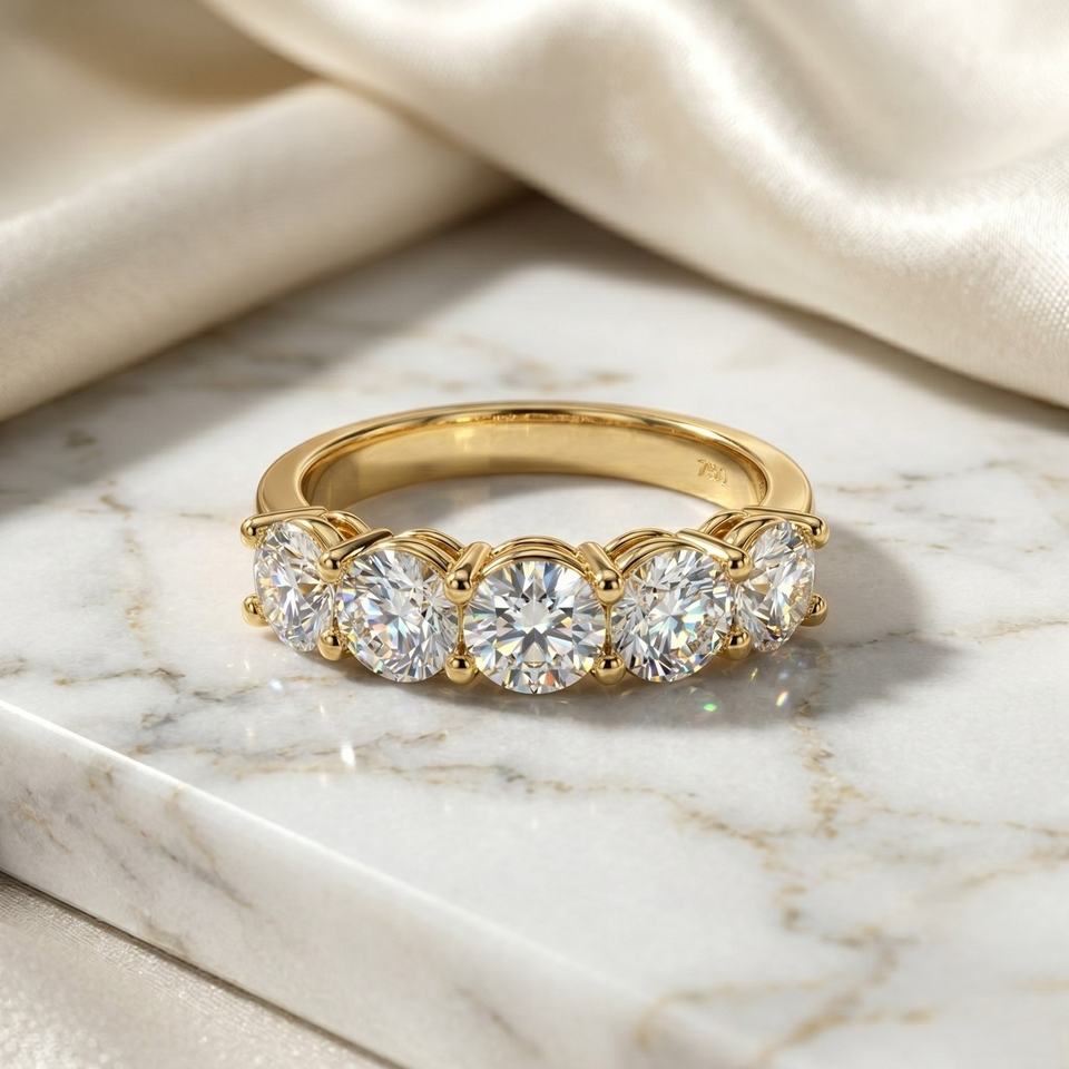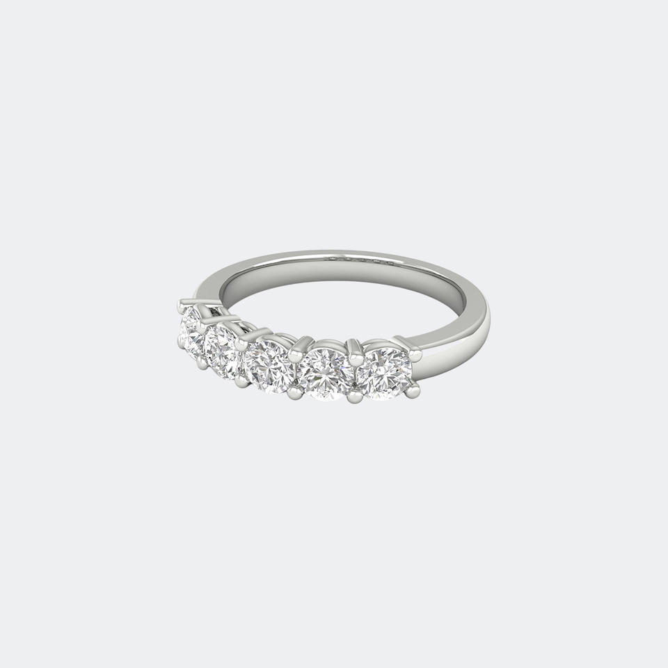แหวนทองคำ 18K น้ำหนัก 1.00 กะรัต ประดับเพชรทรงกลมเจียระไนแบบบริลเลียนท์ 5 เม็ด สี E ดีไซน์หรูหราสำหรับผู้หญิง รับรองโดย IGI จาก OBERON JEWELS