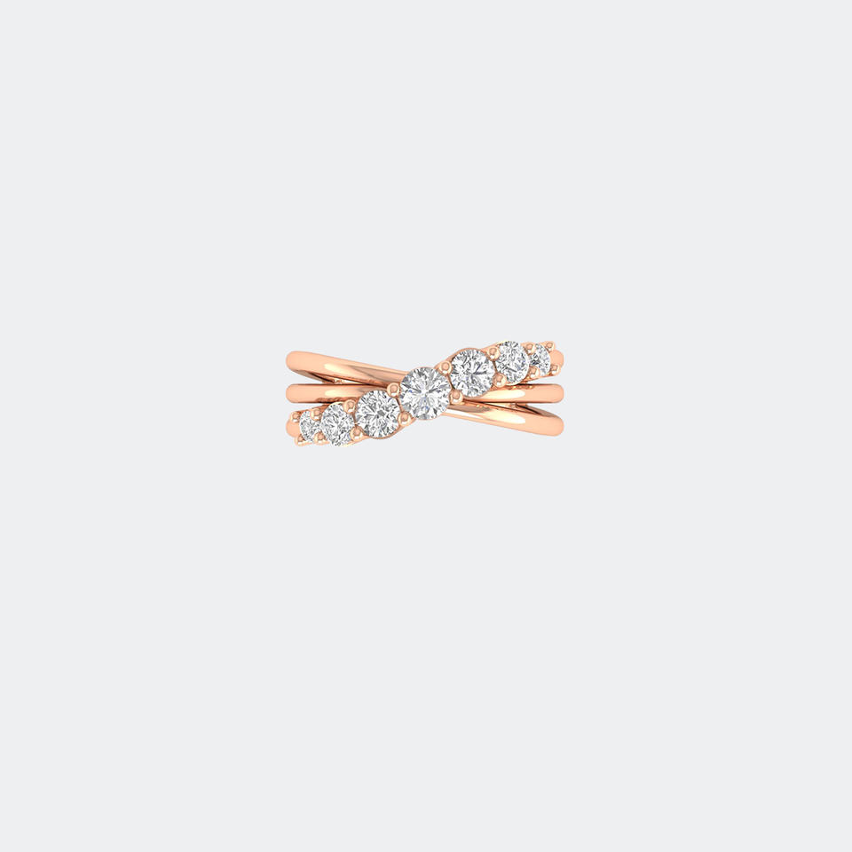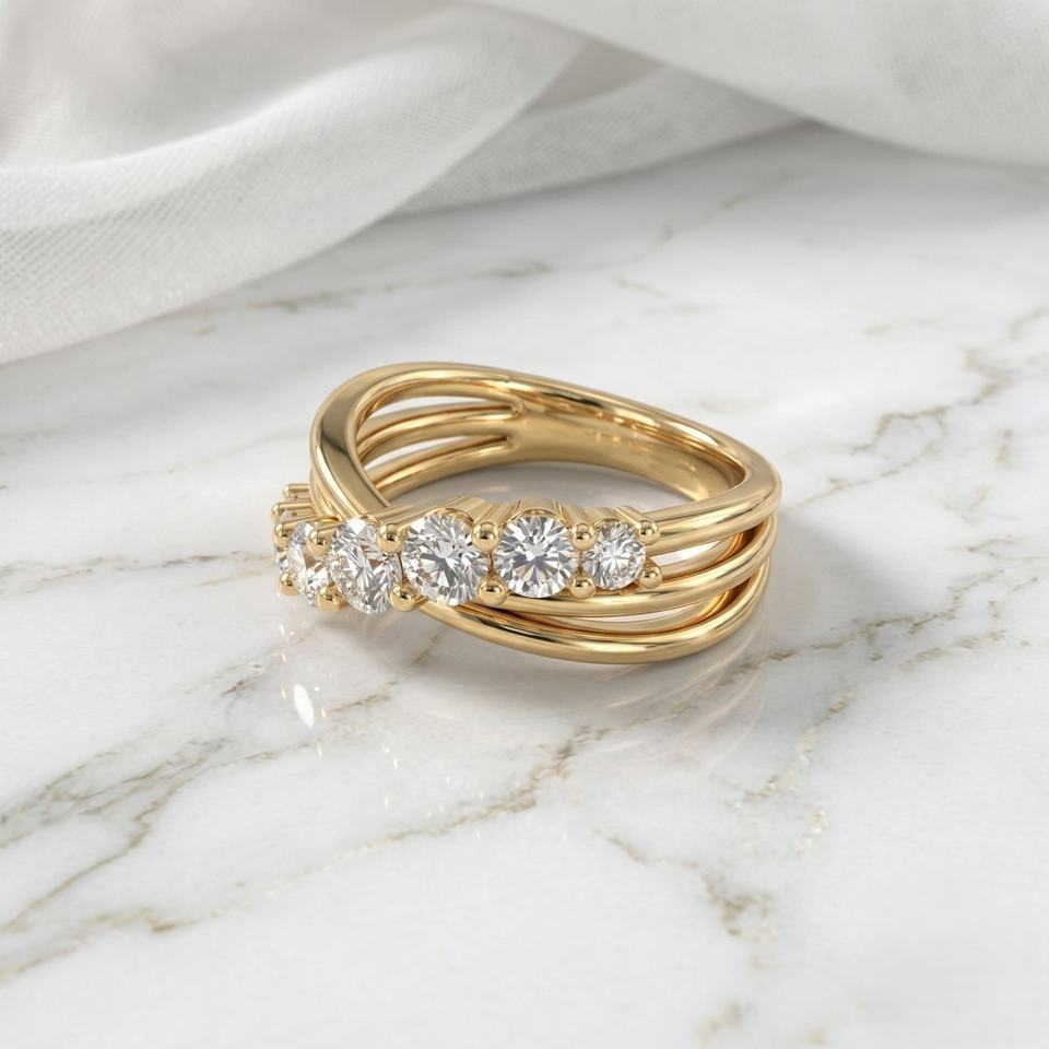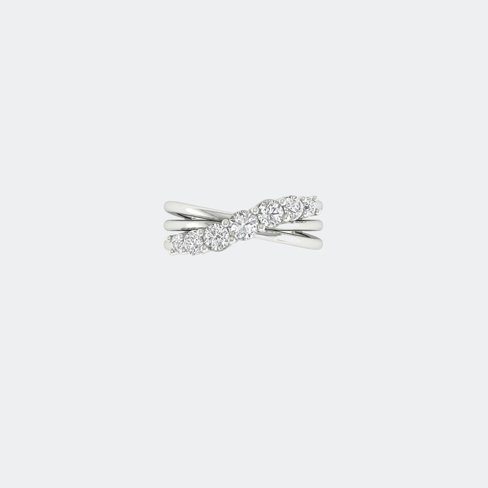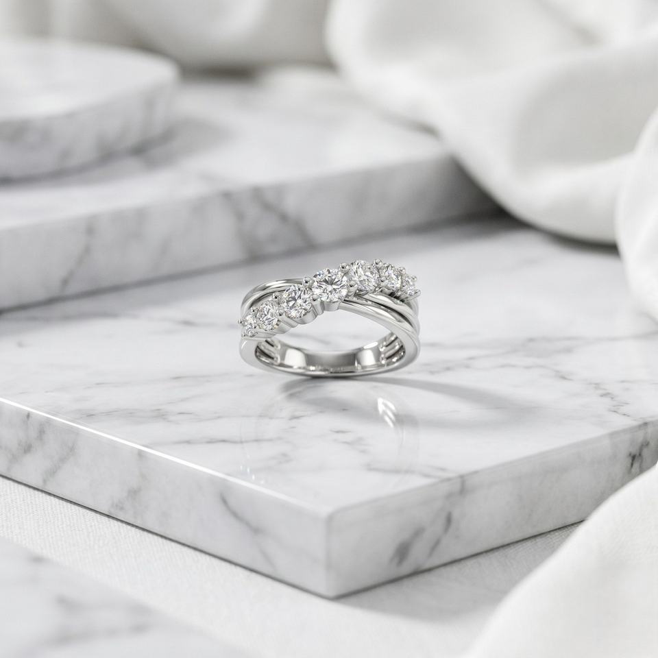แหวนไขว้เจ็ดเม็ดทรงกลมเจียระไนแบบ Prong Set น้ำหนักรวม 1.00 กะรัต