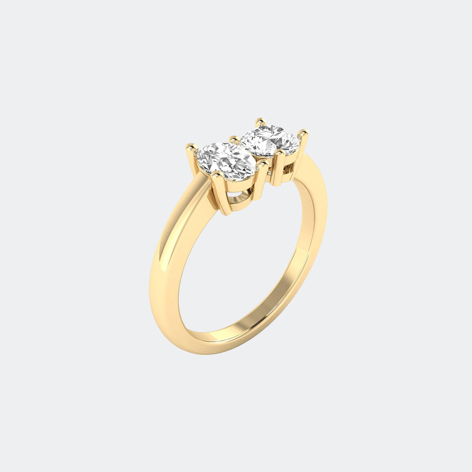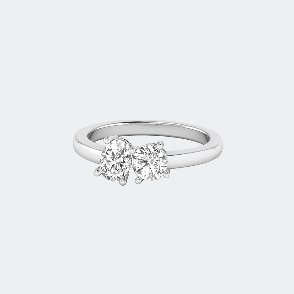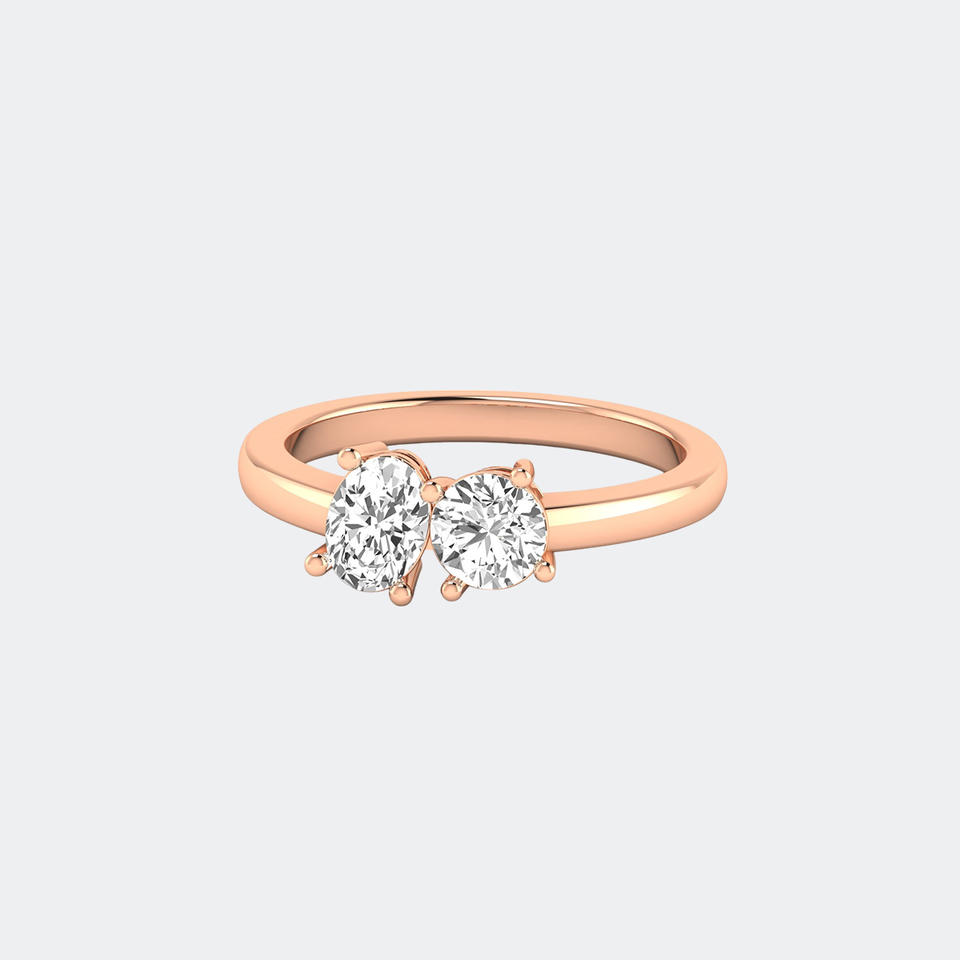 แหวนเพชรทรงกลมและวงรี Toi Et Moi น้ำหนักรวม 1.00 กะรัต ทองคำประดับเพชรเลี้ยงในห้องปฏิบัติการ สี E ความสะอาด VVS2 แหวนสองเม็ดแบบ Bypass สำหรับผู้หญิง สามารถสวมซ้อนกันได้