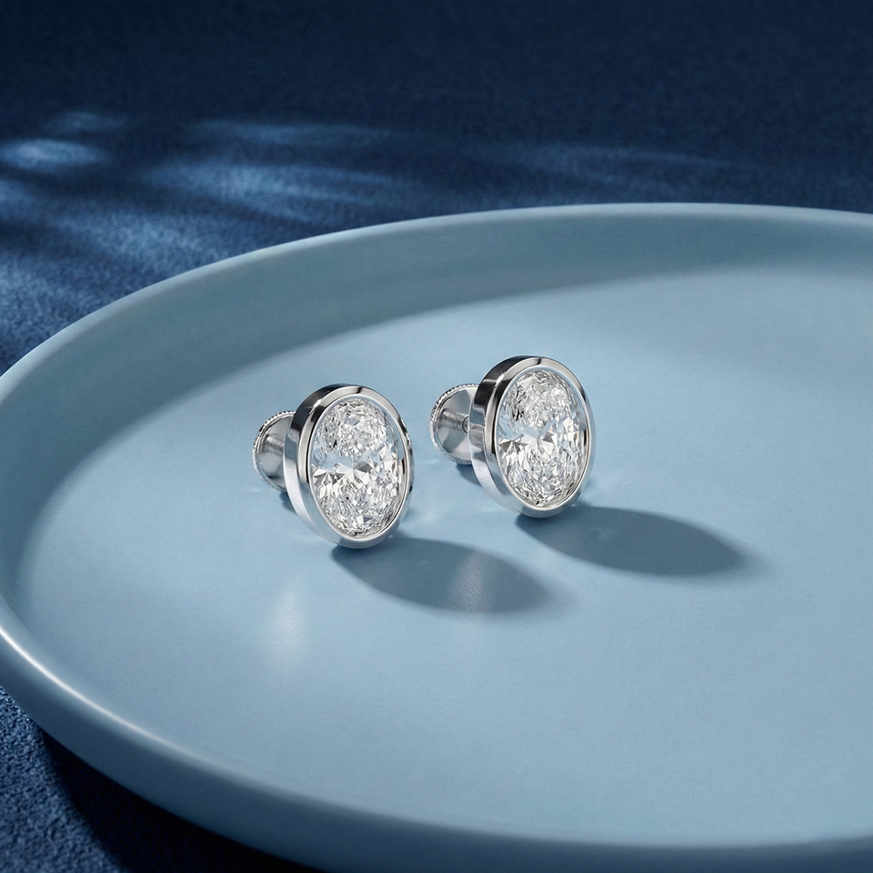 ต่างหูเพชรแล็บทรงรีคลาสสิก 1.00 กะรัต ทอง 10K 14K น้ำหนักเบา ดีไซน์โดดเด่น สินค้าบูติก มีจำนวนจำกัด
