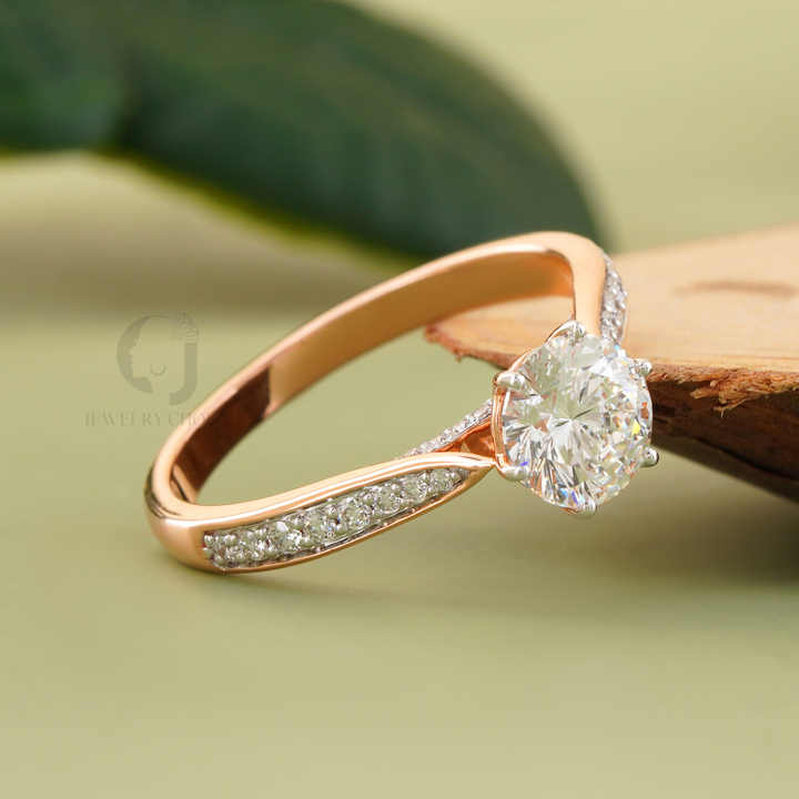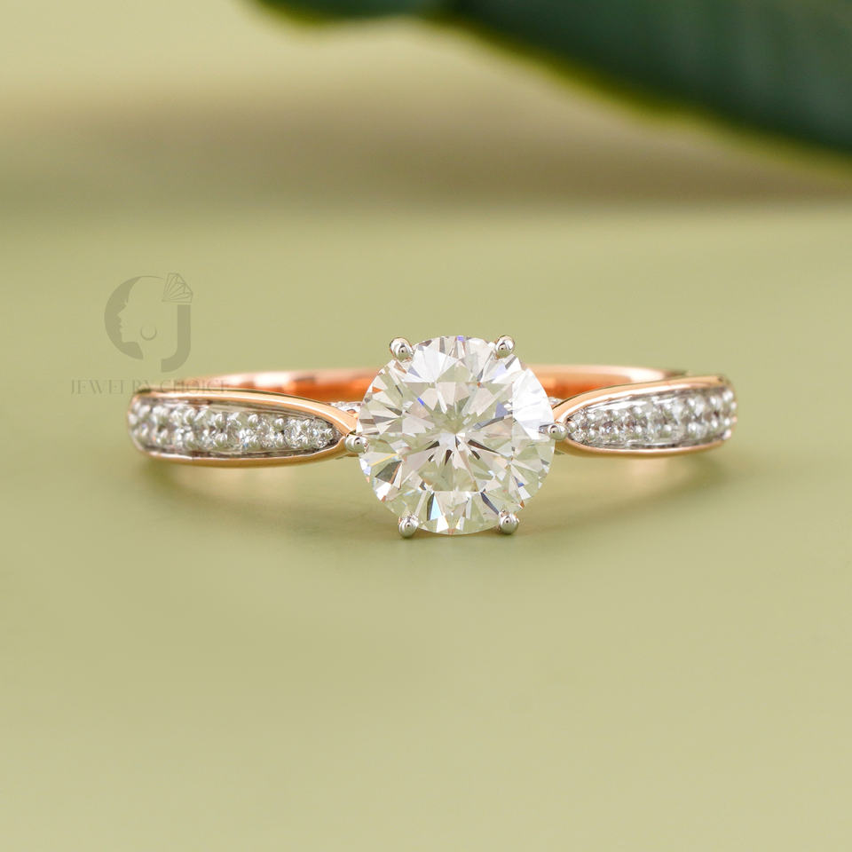 แหวนหมั้นเพชรทรงกลมเจียระไนแบบบริลเลียนท์ น้ำหนัก 1.01 กะรัต เพชรเพาะเลี้ยงในห้องปฏิบัติการ สีโรสโกลด์ ระดับความสะอาด VVS VS DEF ประดับเพชรเม็ดเดี่ยว พร้อมเพชรข้าง ดีไซน์เรียบหรูสำหรับเจ้าสาว
