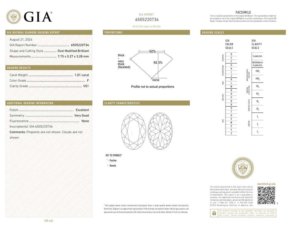 เพชรโซลิแทร์สีขาวทรงหลวมได้รับการรับรองเกรดสี F กะรัตเพชร VS1เจียระไนทรงรีเพชรทรงรีสวยงาม