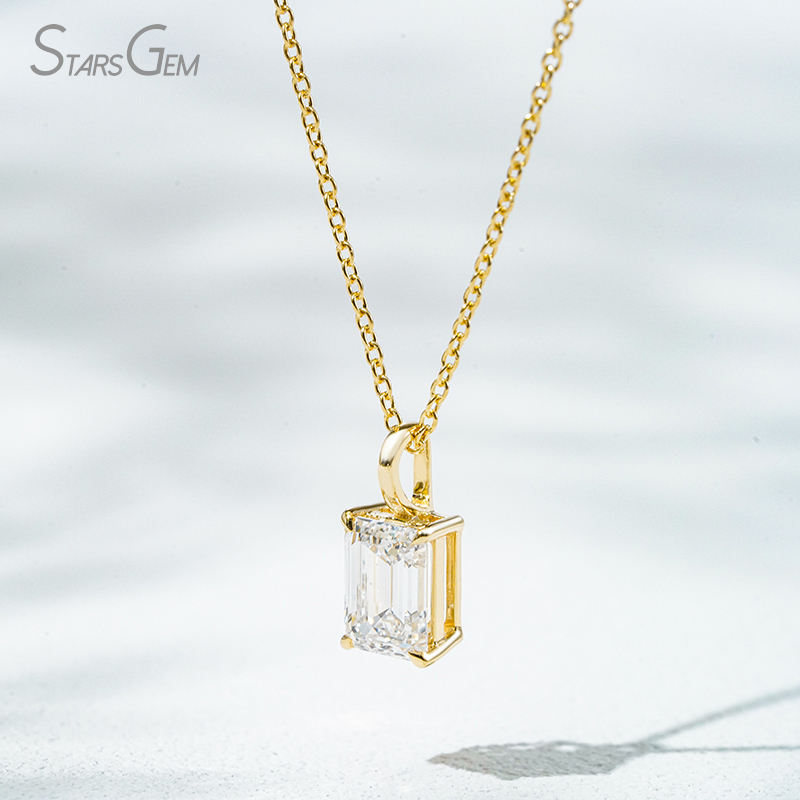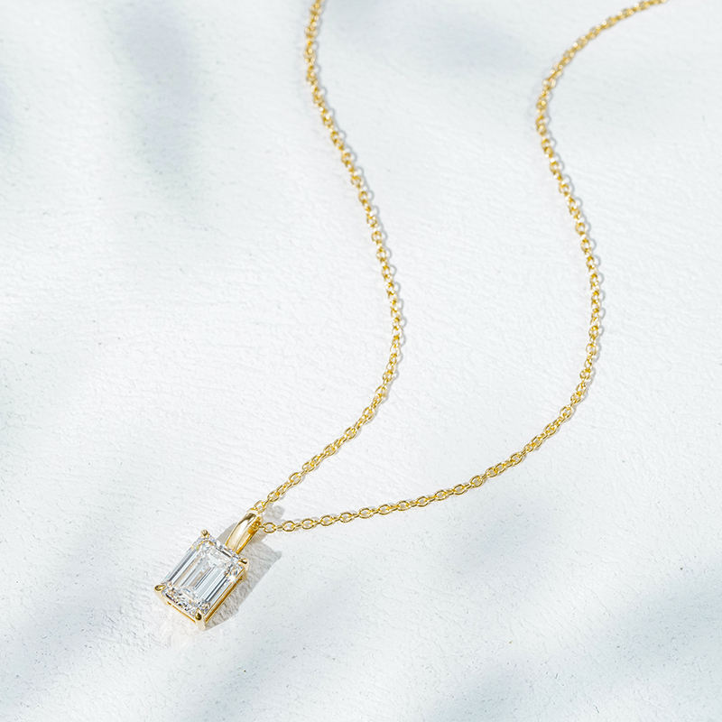 จี้เพชรทรงเหลี่ยมมรกต 1.01 กะรัต ทอง 18K ประดับเพชร HPHT CVD ที่ได้รับการเพาะเลี้ยงในห้องปฏิบัติการ ความยาวสร้อยคอ 40+5 ซม. สร้อยคอทองคำขาวและทองคำเหลือง