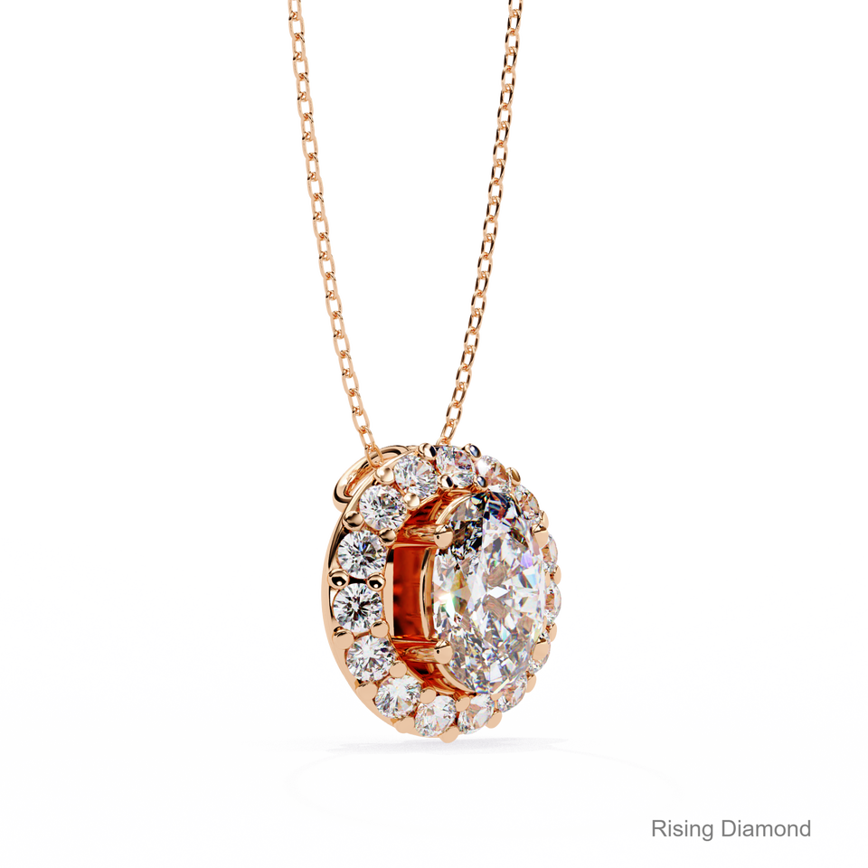 ชุดรัศมีเพชรสำหรับปลูกในห้องปฏิบัติการทรงรี1.02 CT จี้เพชรแบบโซลิแทร์/ CVD จี้เพชรสีโรสโกลด์/ของขวัญวันครบรอบสำหรับเธอ